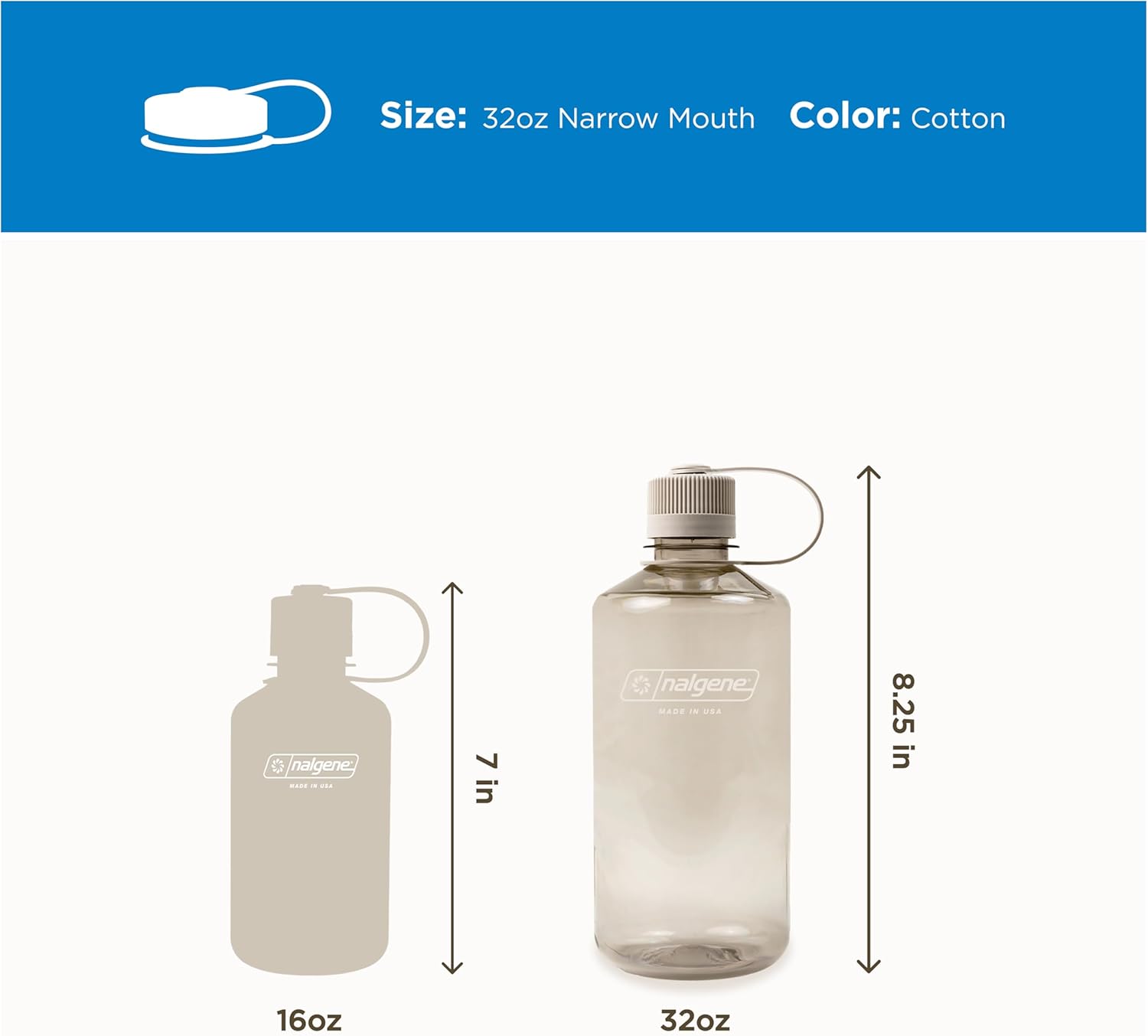 Nalgene 32 oz Narrow Mouth Water Bottle | BPA-Free, Durable & Leak Proof, Lightweight Bottle for Gym, Office & Travel, Cotton