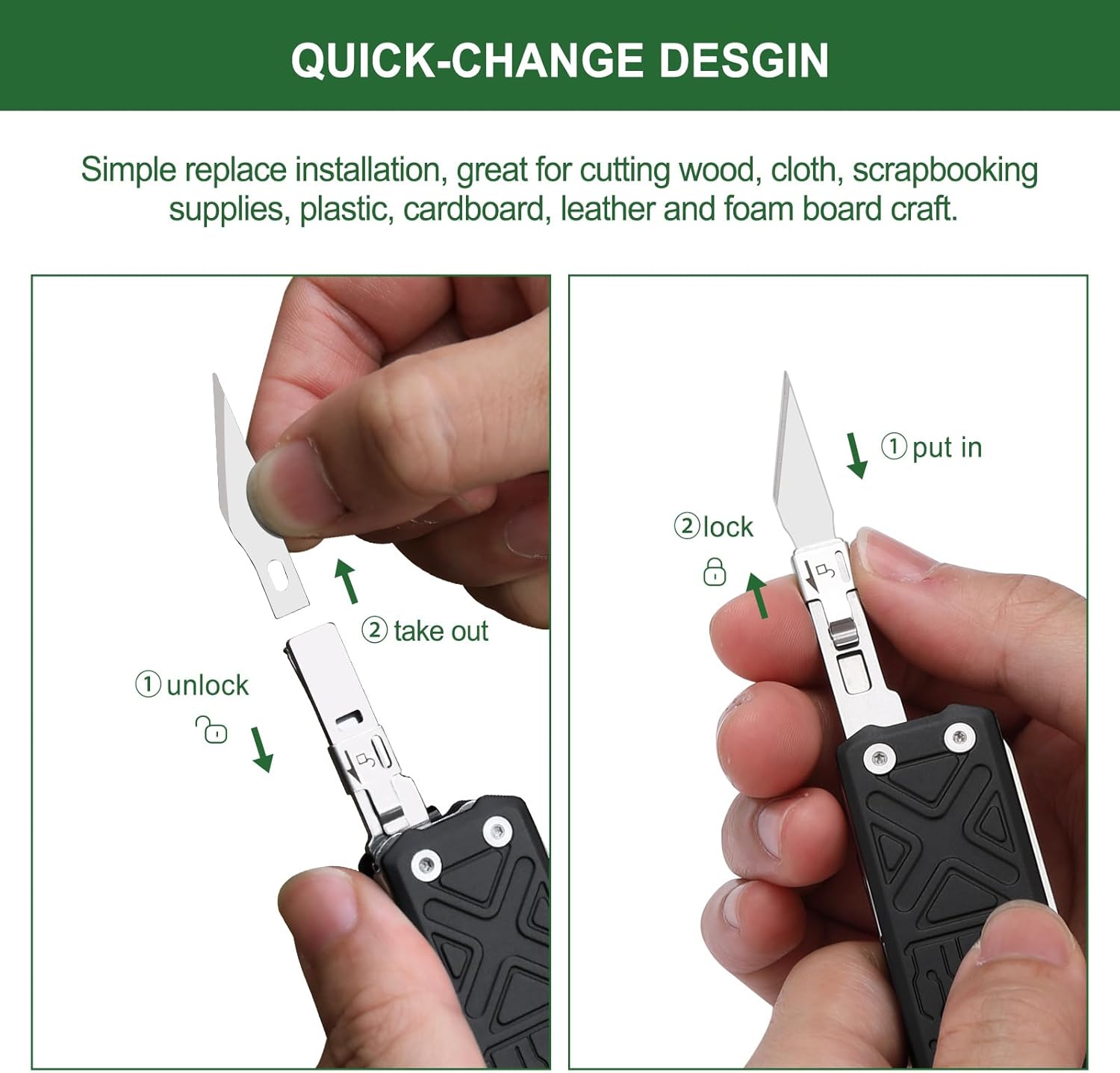 - Replaceable Exacto knife blade