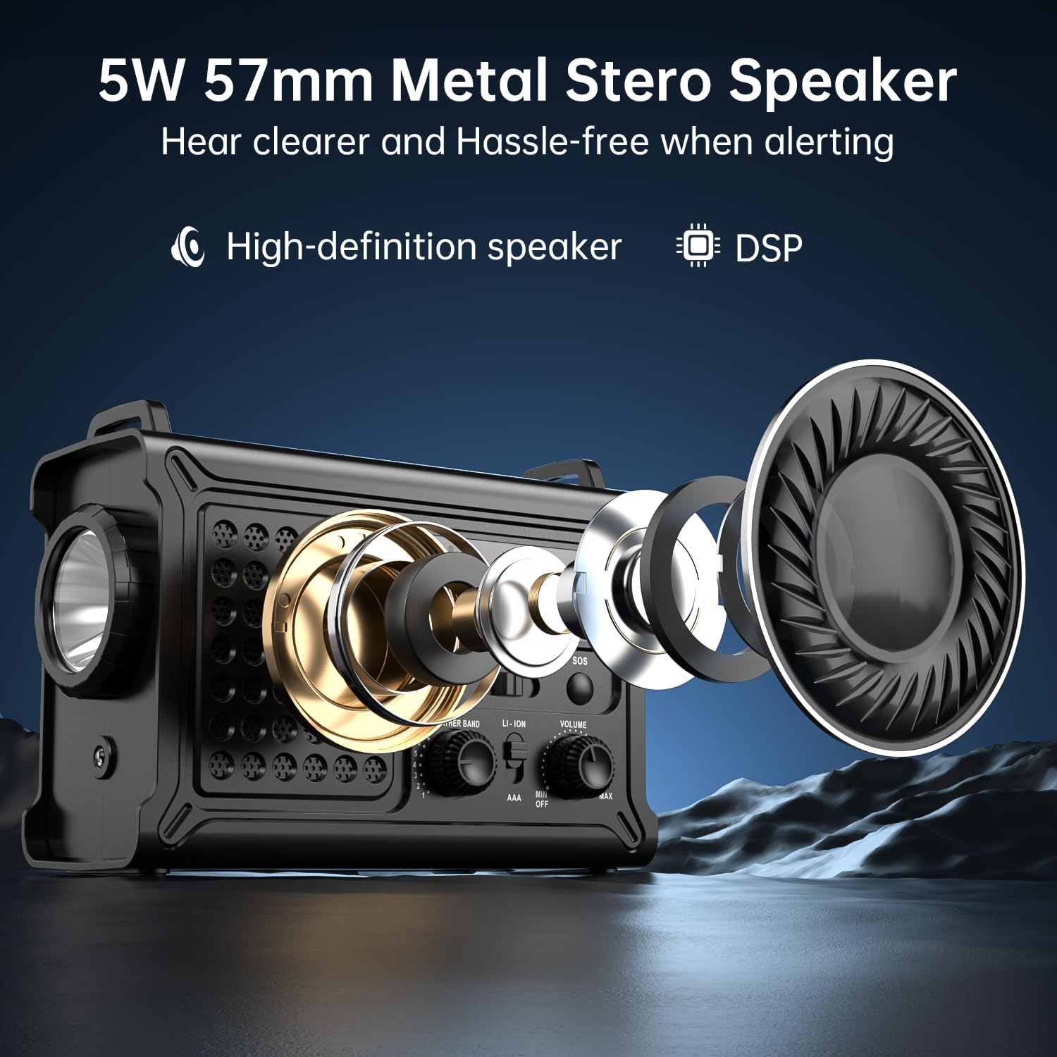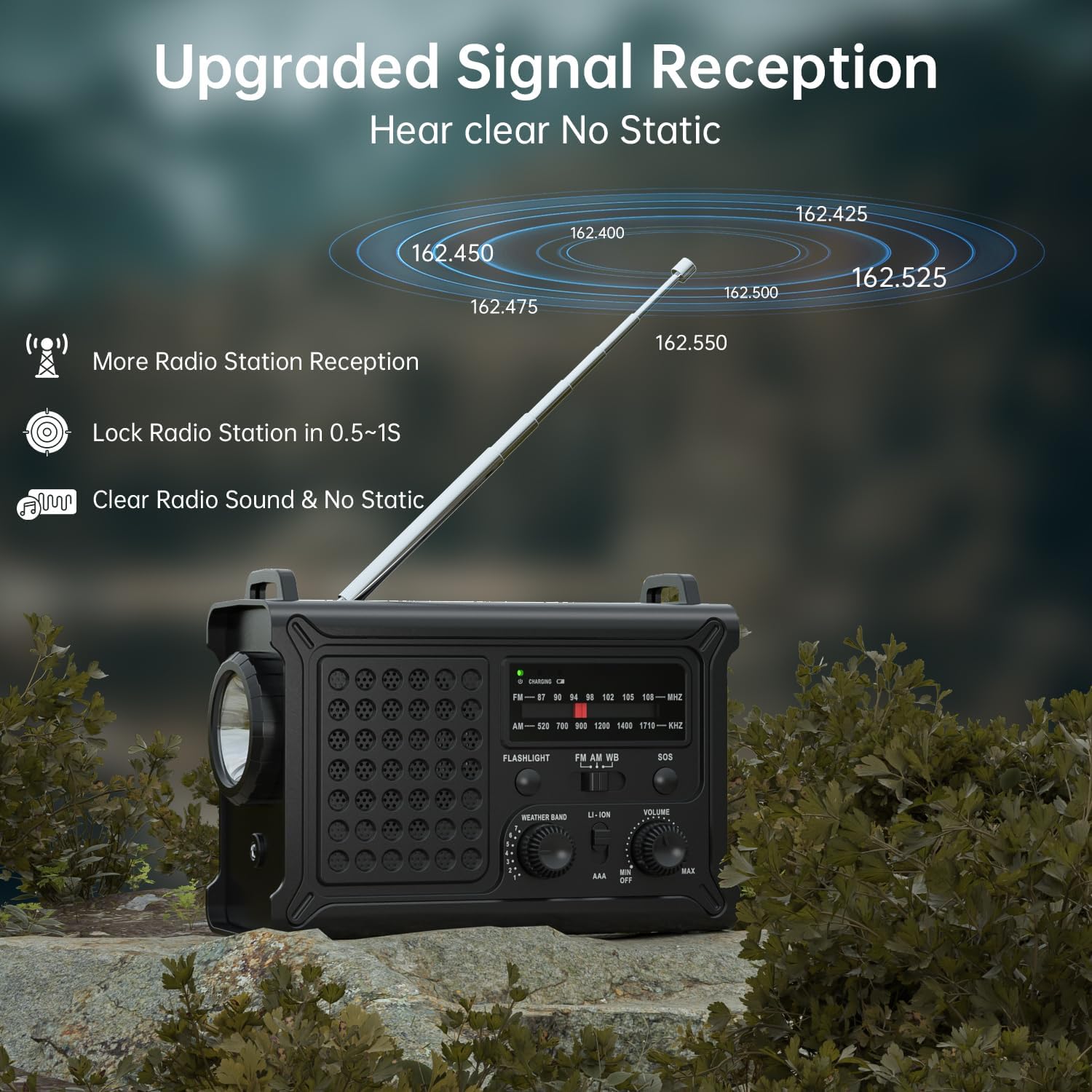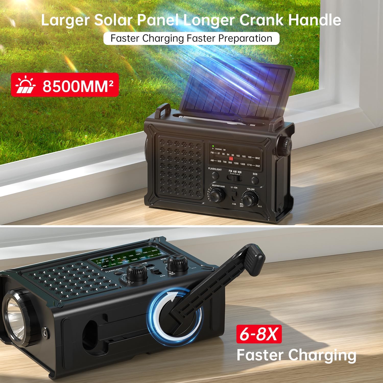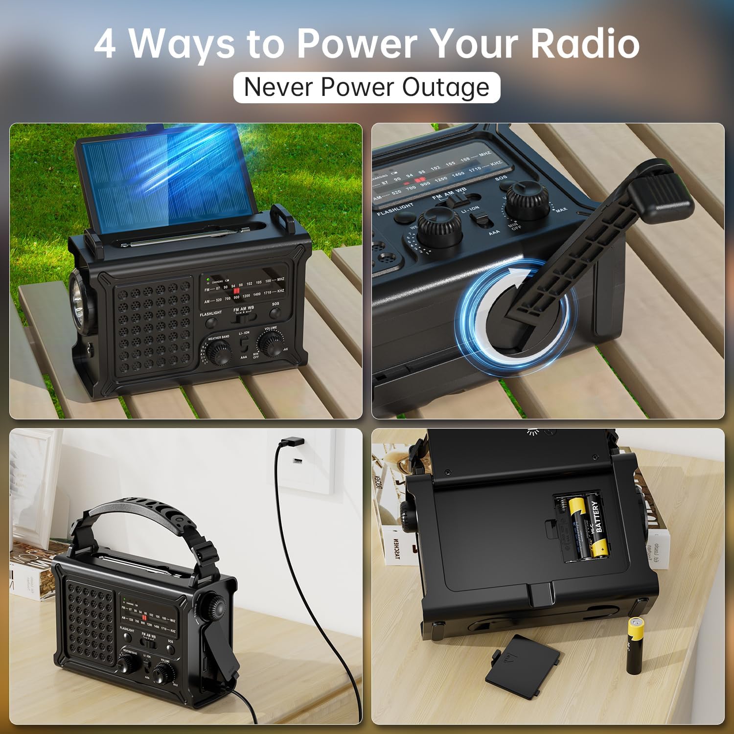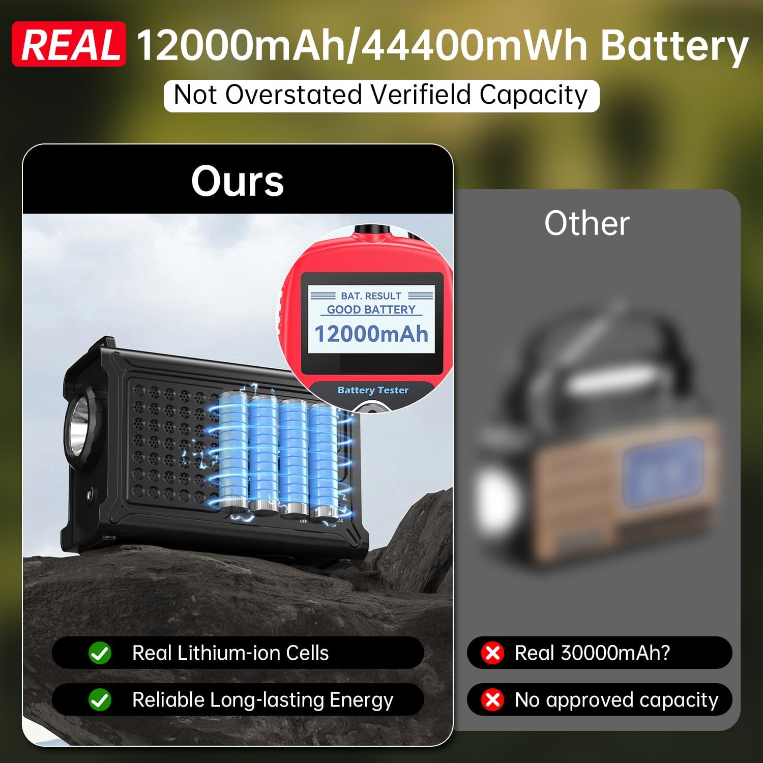 NOAA Emergency Weather Radio-12000mAh/44400mWh Radio Portable AM/FM with Solar/Hand Crank/USB Rechargeable Battery/SOS Alarm for Indoor/Outdoor Emergencies