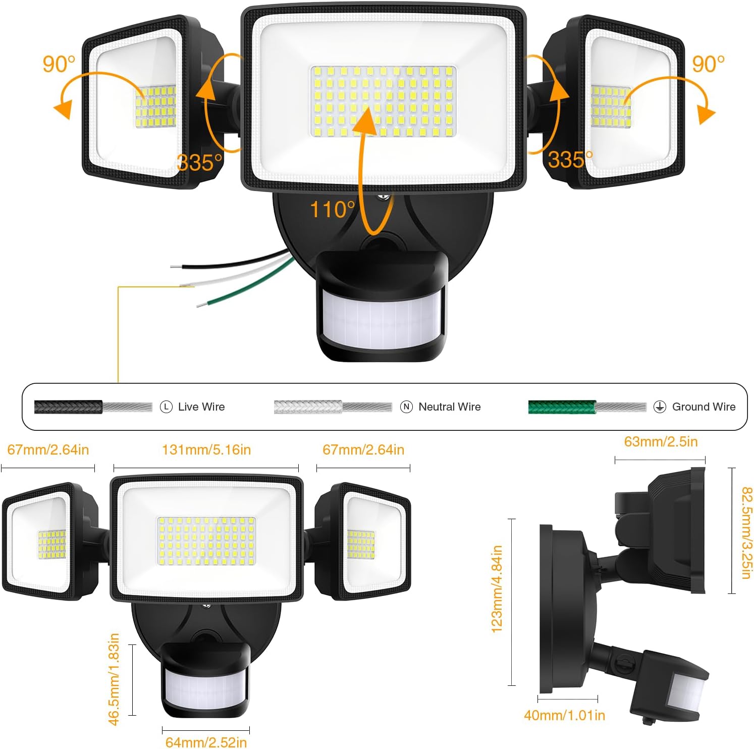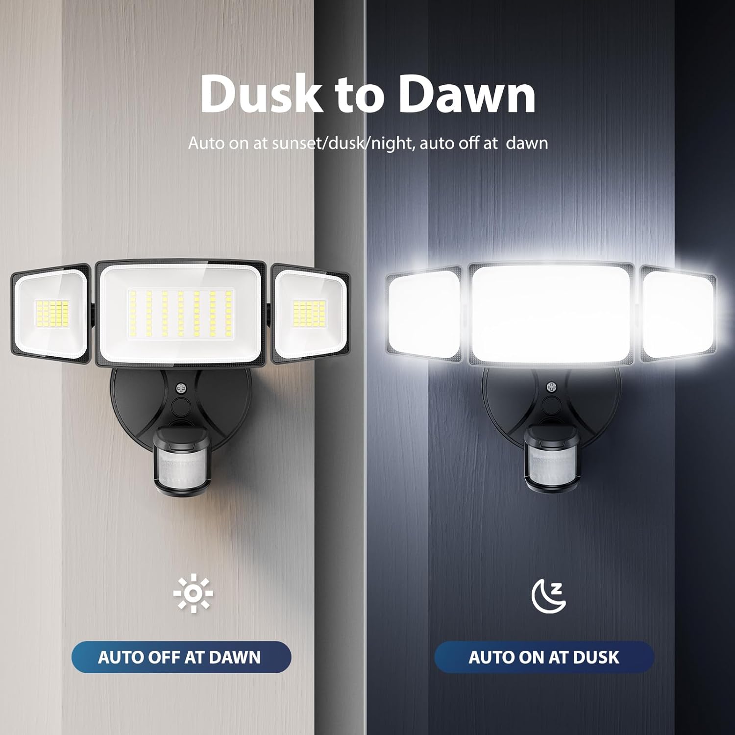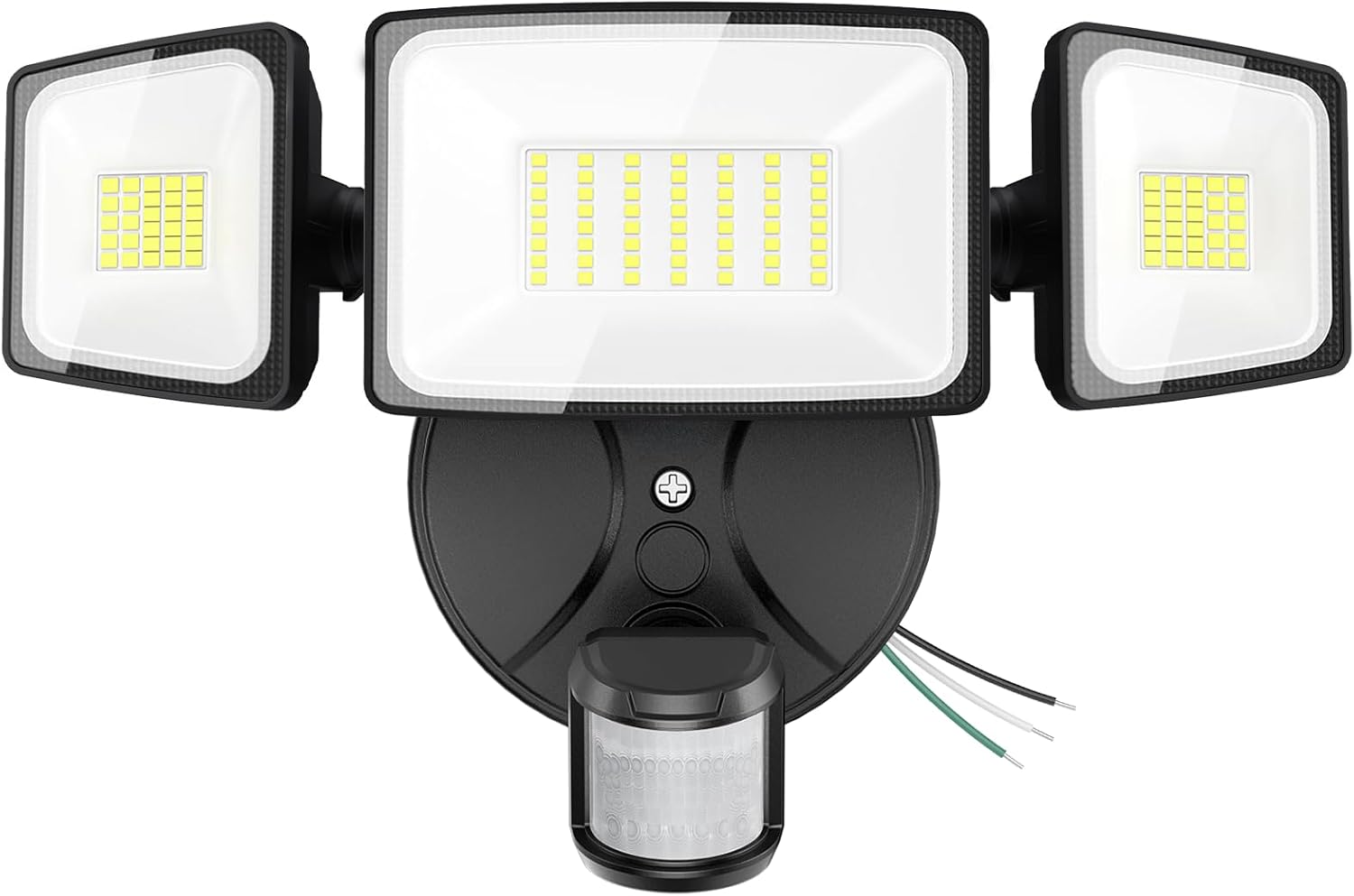Onforu 75W LED Flood Light Motion Sensor Outdoor, 7000lm Dusk to Dawn Flood Light, Security Light with Three Head, IP65 Waterproof Exterior Floodlight, 6500k Wall Light for Entryway Stairs Yard Garage