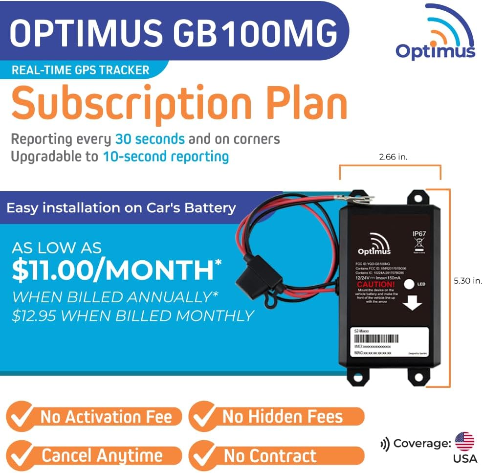 Optimus Wired GPS Tracker for Vehicles – Easy Installation on Car’s Battery – Low Cost Subscription Plan Options