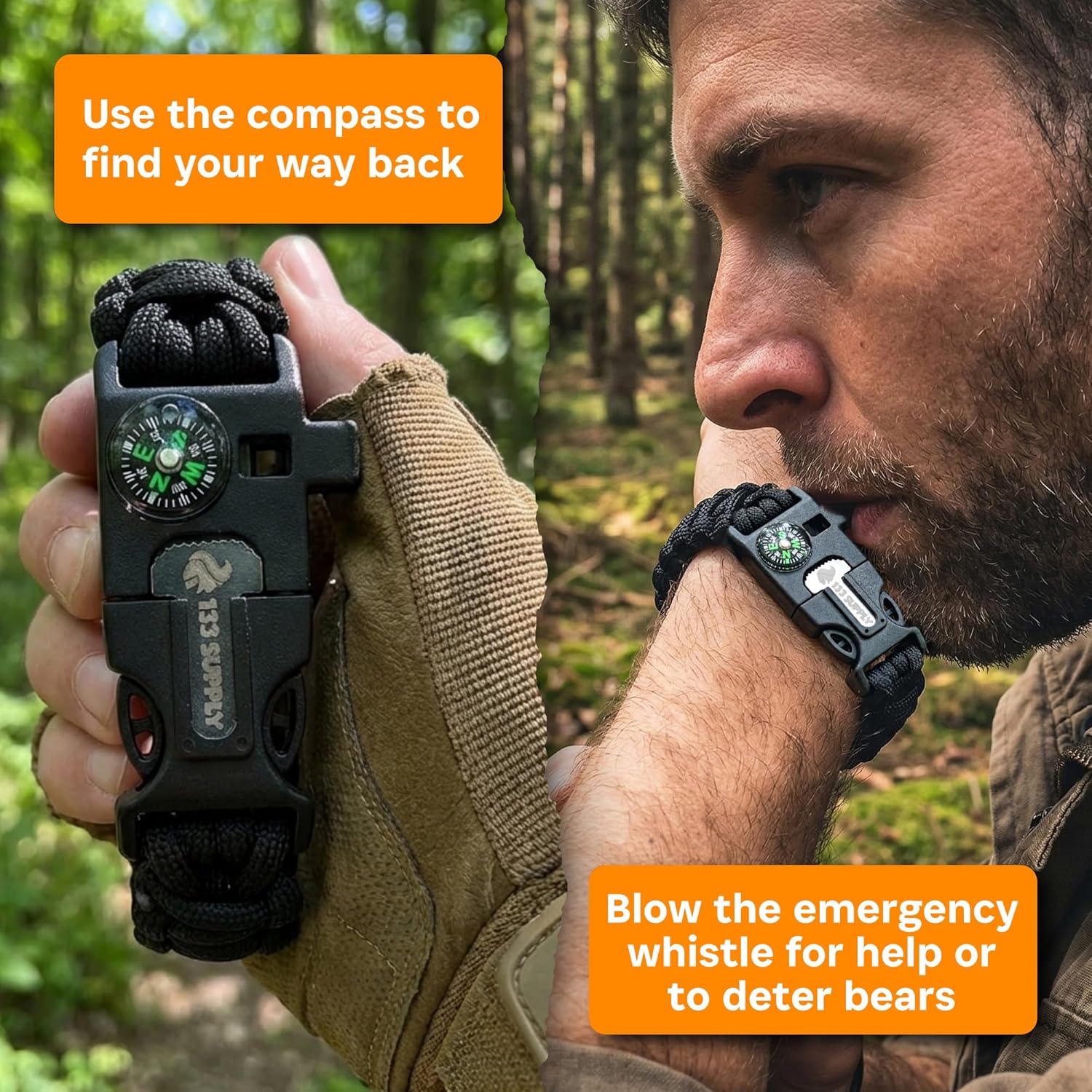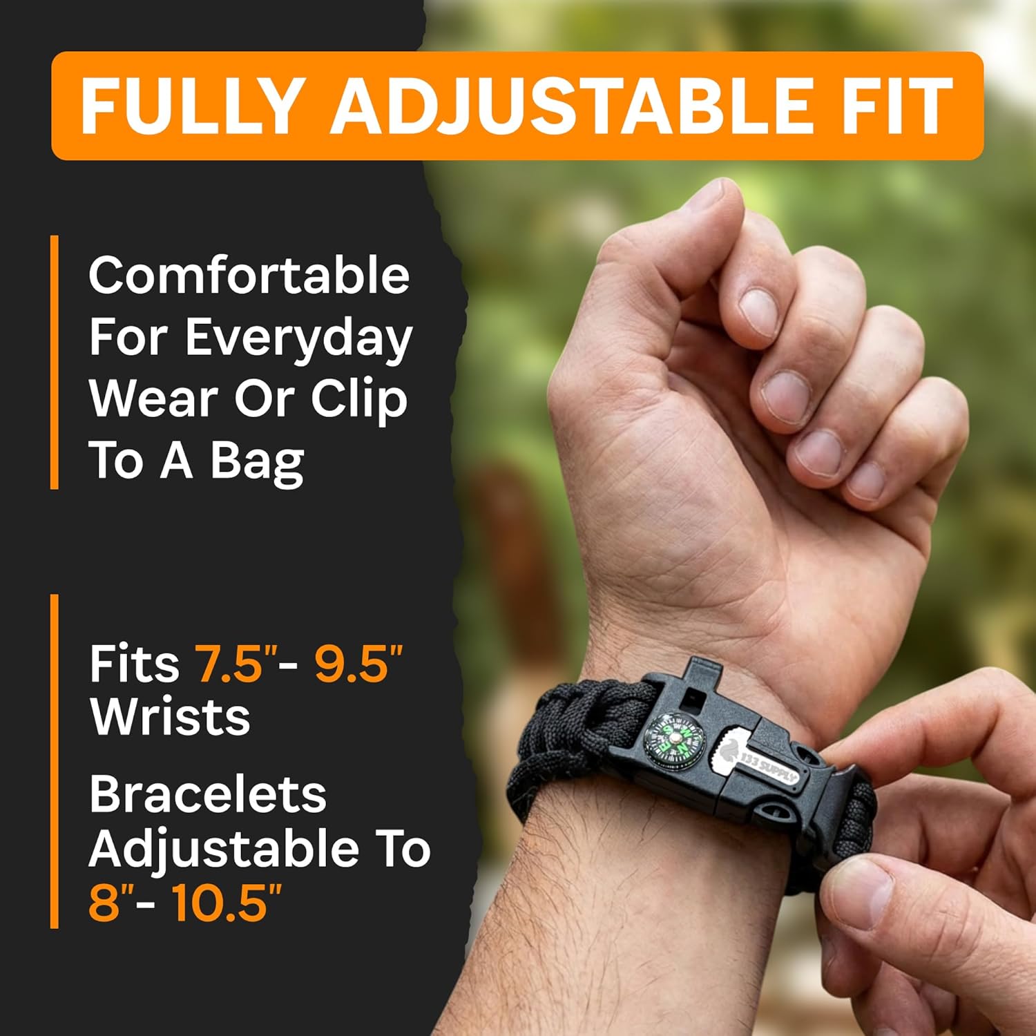 The Paracord Bracelet Compass is an essential item for outdoor enthusiasts. This versatile survival kit includes a flint fire starter, a loud whistle, and a built-in compass, making it a must-have for camping, hiking, and fishing trips. The bracelet is adjustable, ensuring a comfortable fit for both men and women, regardless of wrist size. This feature makes it an excellent gift option without the worry of sizing issues.