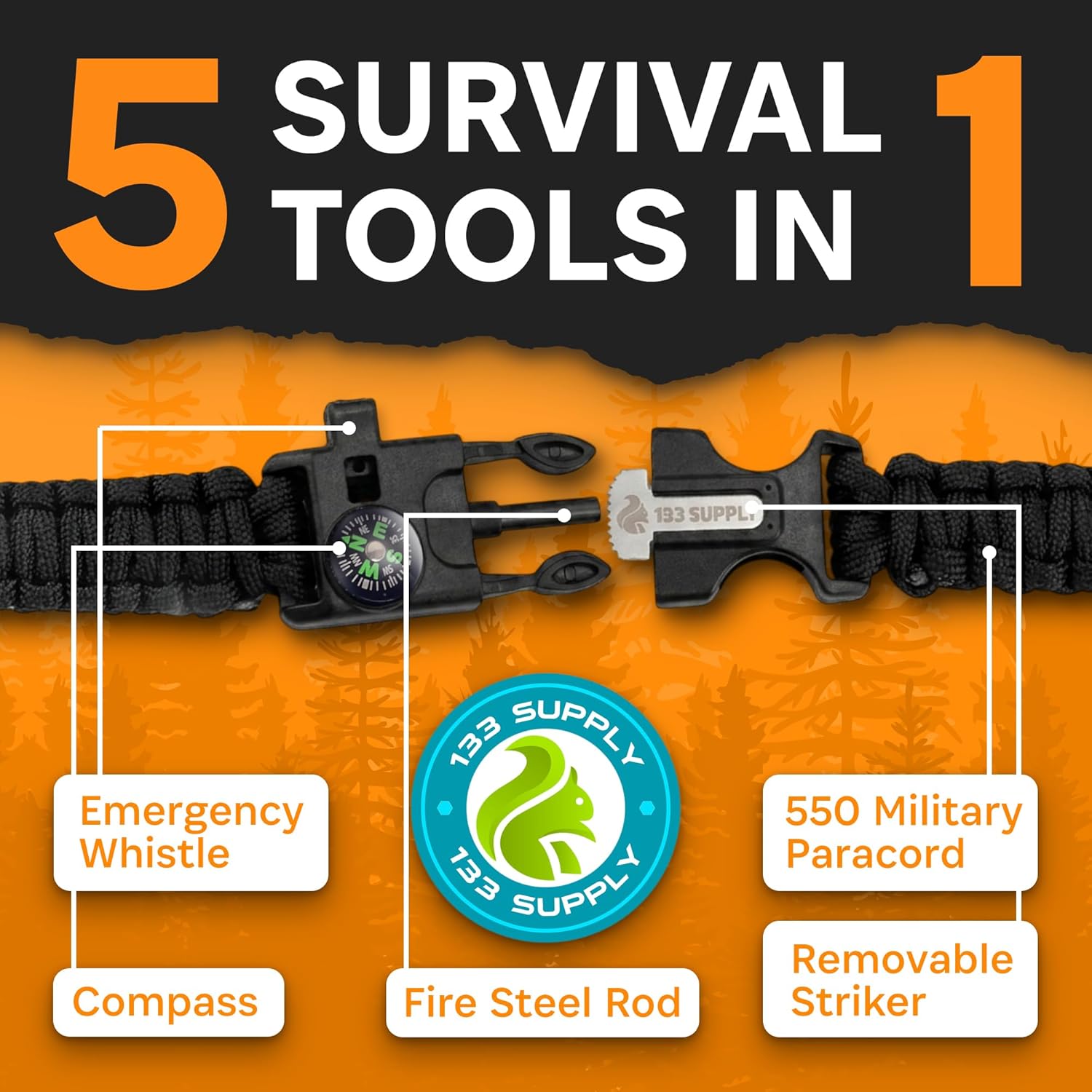 - Includes essential survival tools