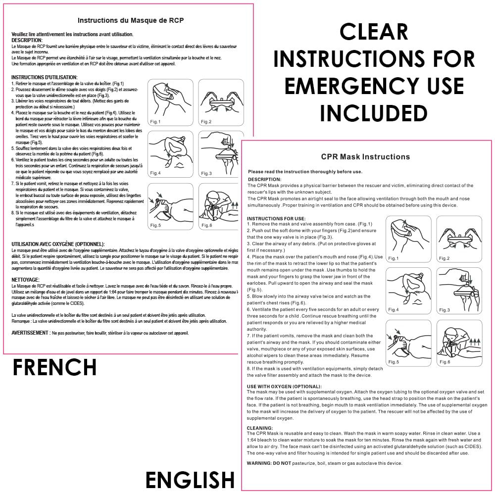 The Primacare RS-6845 CPR Rescue Mask is a vital addition to any emergency kit. This mask is designed for both adults and children and features a one-way valve that minimizes the risk of cross-infection during CPR. Its compact size of 6.5x4.8x1.6 inches makes it easy to store in your car or first aid kit. The hard plastic carrying case protects the mask from deformation, ensuring it remains effective when needed. The air-cushioned edges provide comfort for the user, while the elastic straps ensure a secure fit during use.