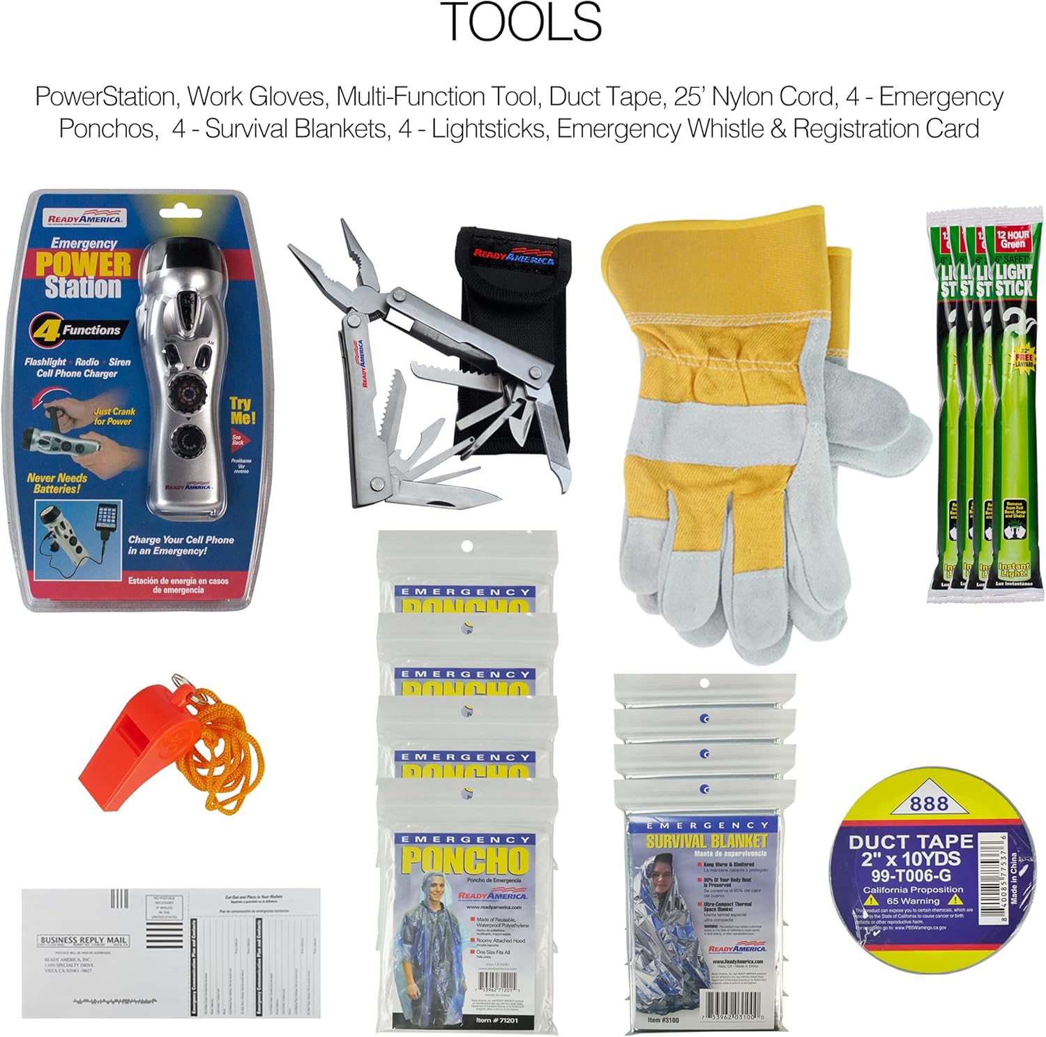 Additionally, the kit features a power station with radio, charger, flashlight, and siren capabilities, ensuring you have the tools necessary for effective disaster preparedness.