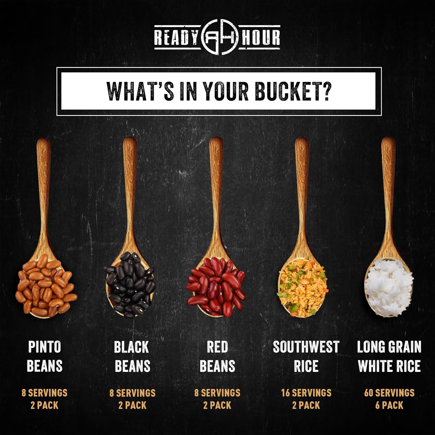 Ready Hour Beans Trio with Rice Kit Bucket (100 Servings) Survival Beans and Rice, Survival Food Storage, Emergency Preparedness Food, Prepper, Easy Prep, 30-Year Shelf Life