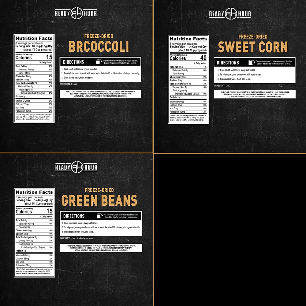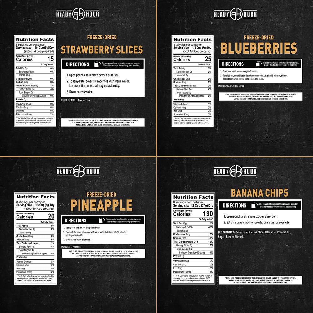 Ready Hour, Fruit & Veggie Mix, Non-Perishable Freeze-Dried Food, 30-Year Shelf Life, Portable Emergency and Adventure Food Supply, Durable Flood Safe Container, 56 Servings