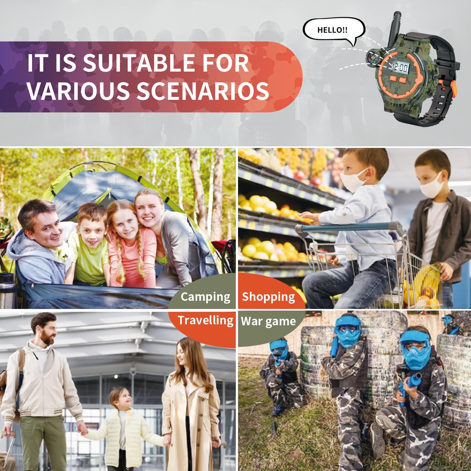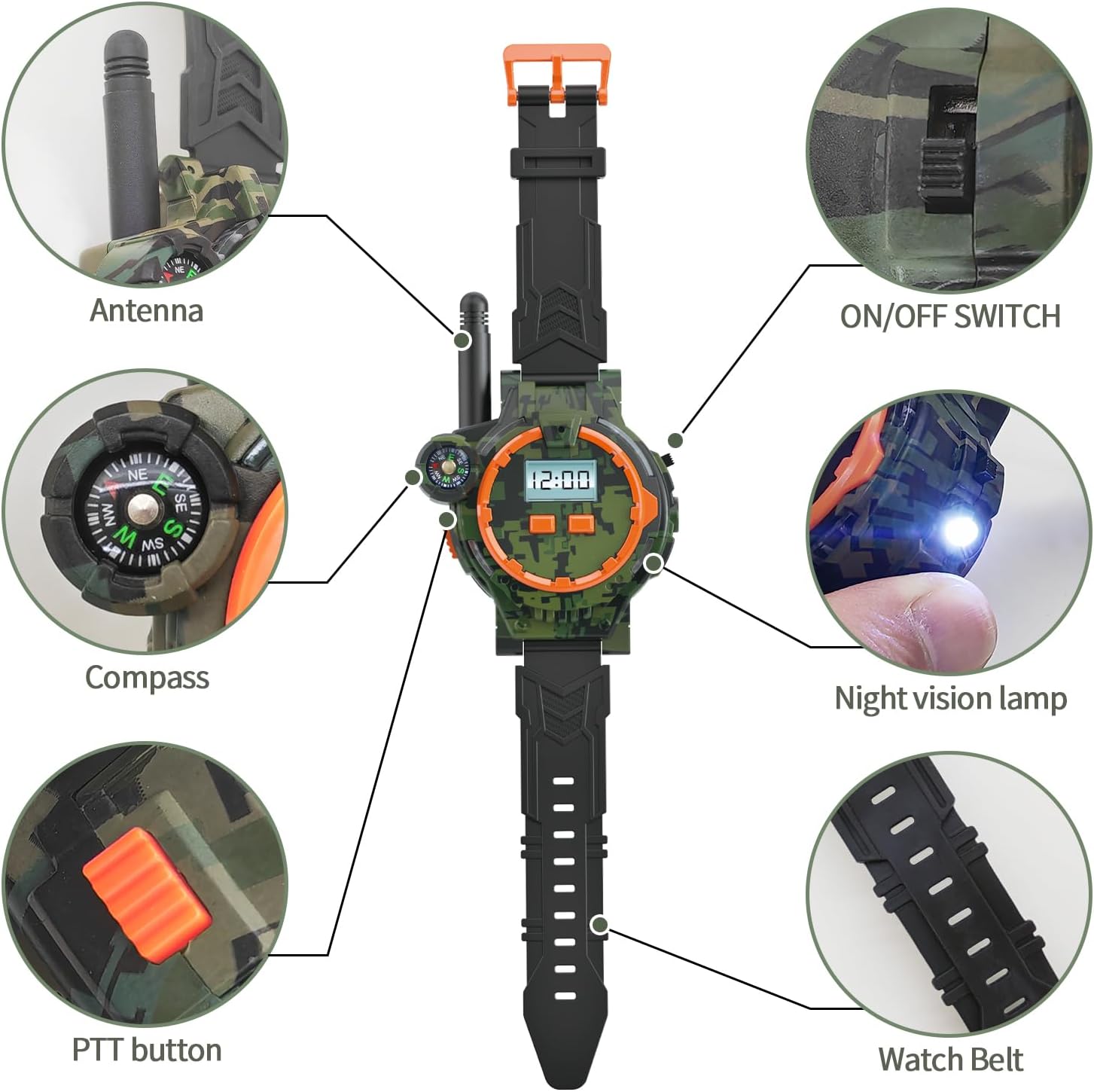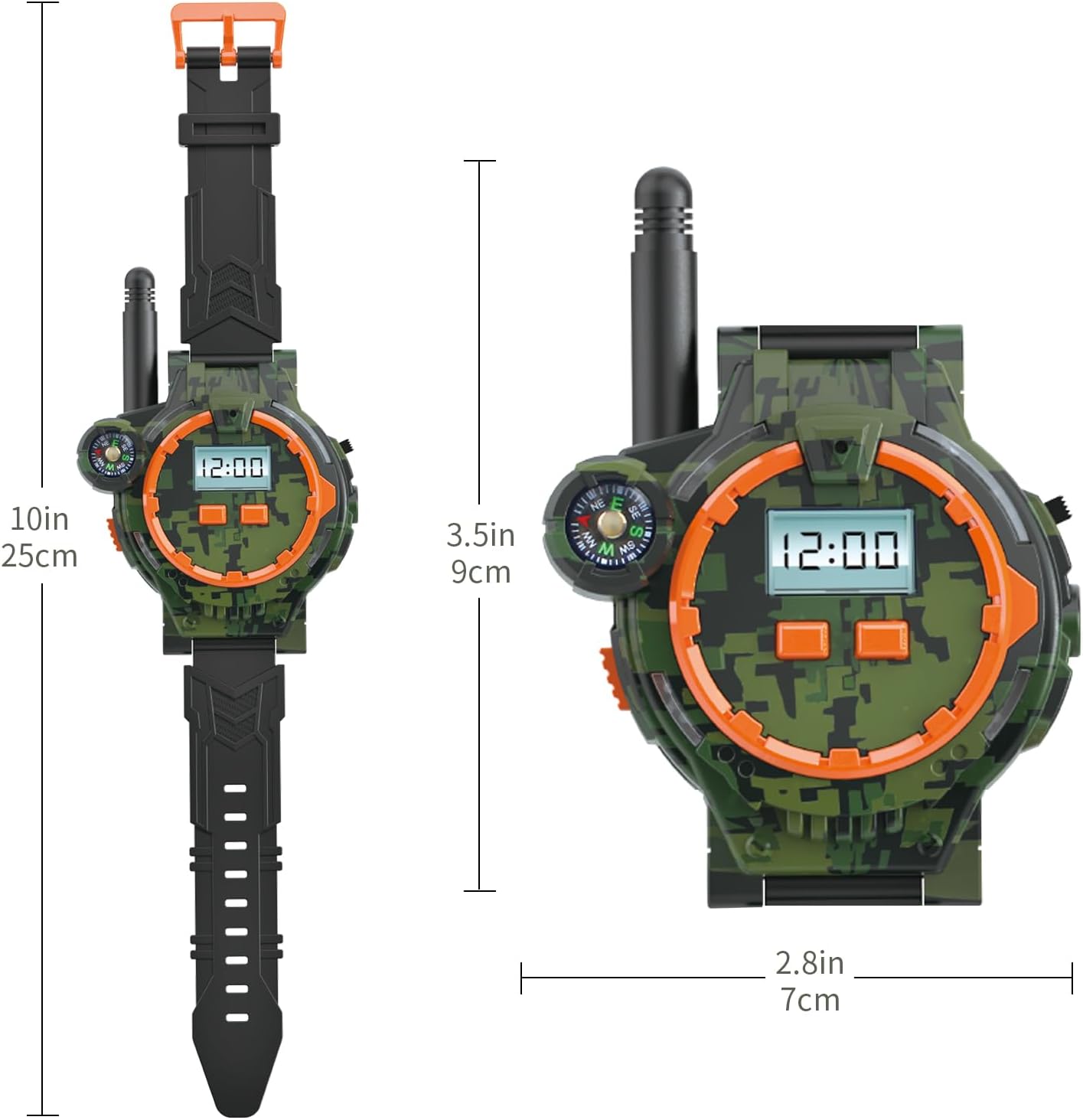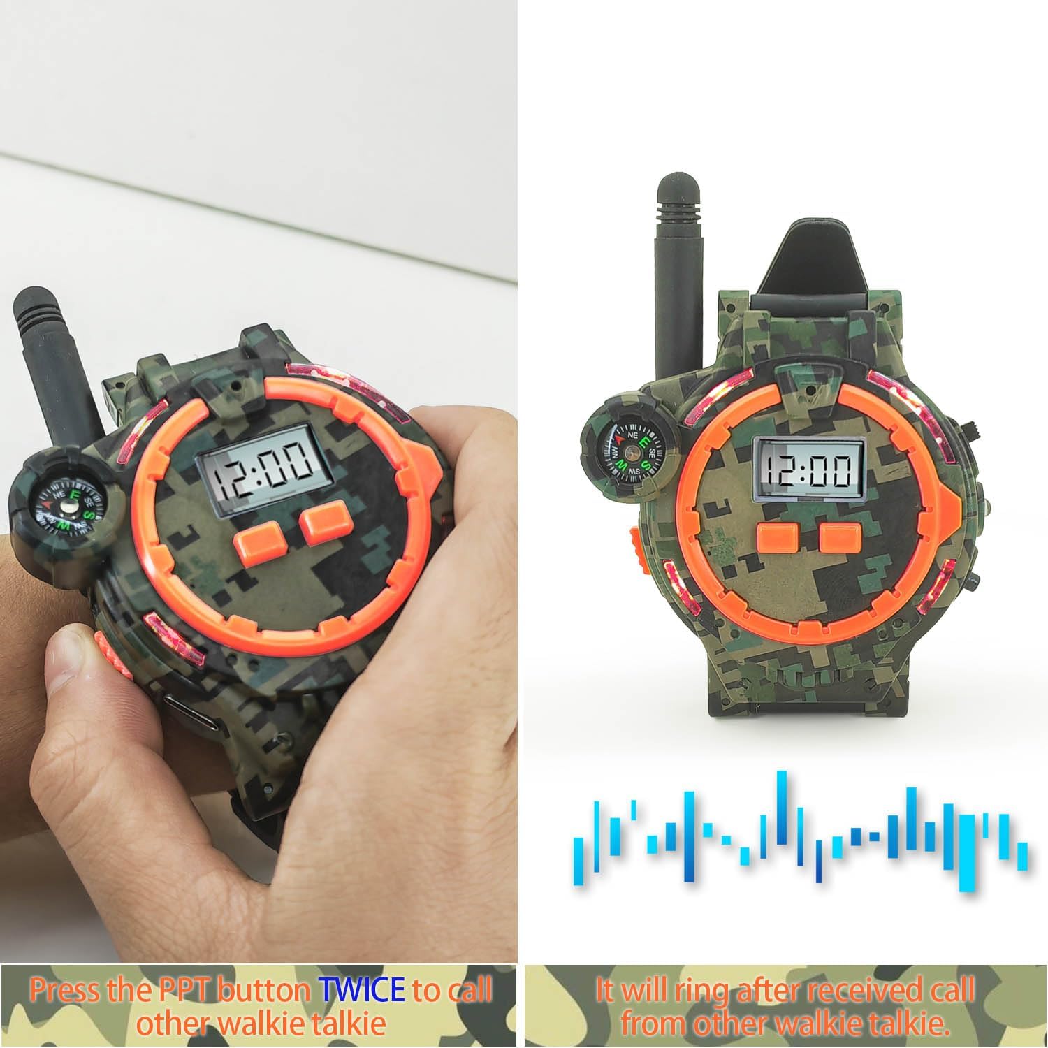 Unleash your inner adventurer with these rechargeable walkie talkies designed for kids! This set includes two walkie talkies, two USB charge cables, and a user manual. With a rugged camouflage exterior, they are perfect for outdoor adventures. Enjoy clear communication with a range of up to 1200 feet, making them ideal for playtime or family outings. The built-in LCD display and flashlight ensure visibility in low-light conditions, while their compact size makes them easy to carry.