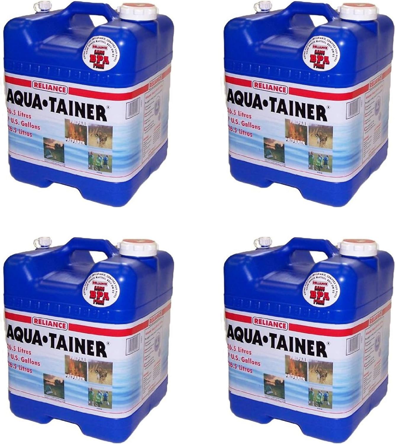 Reliance Products Aqua Tainer 7 Gallon Drinking Water Storage Container Tank (4 Pack)