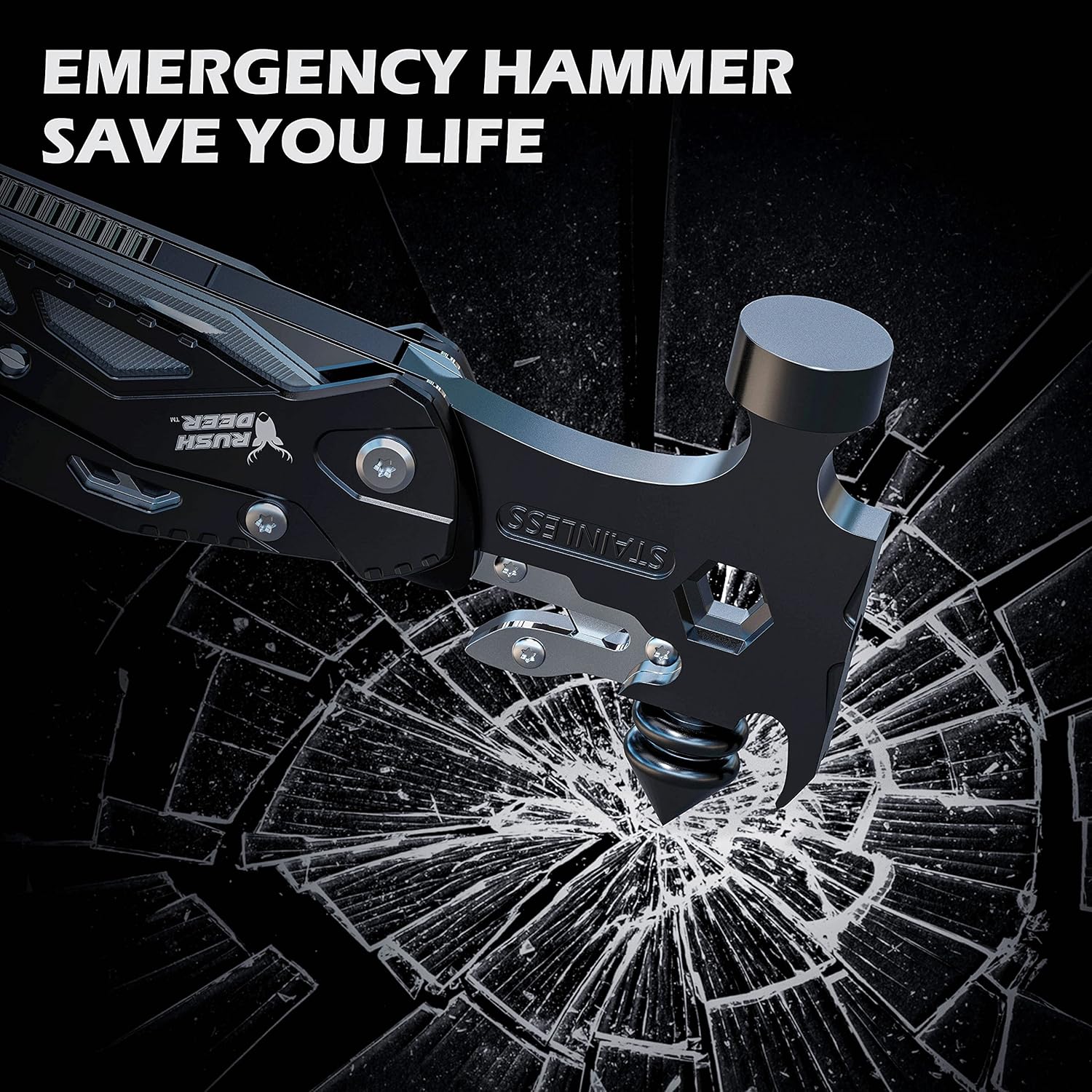 Rush Deer Camping Essentials Multitool,16 in 1 Multi Tool Survival Gear with Hammer, Pliers, Knife, Screwdrivers, Bottle Opener & Car Safety Hammer, for Camping, Hiking, Gift for Dad Him