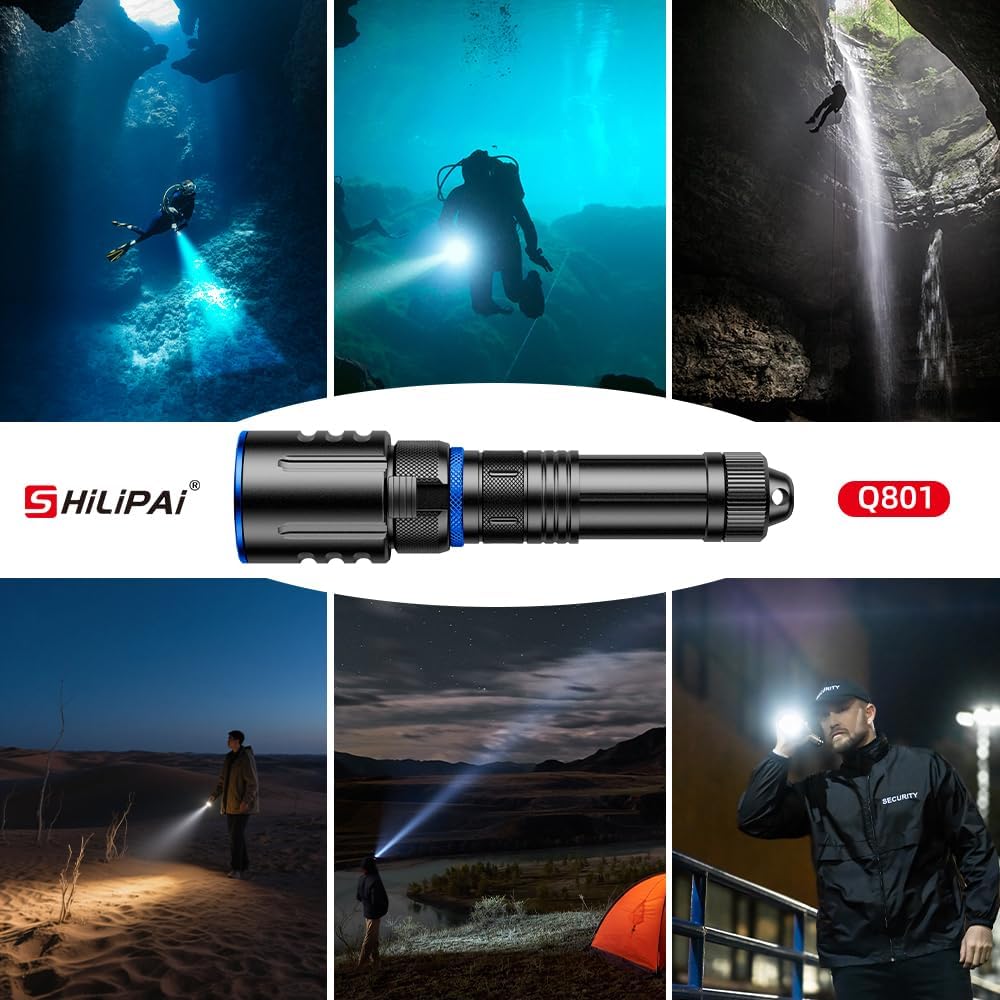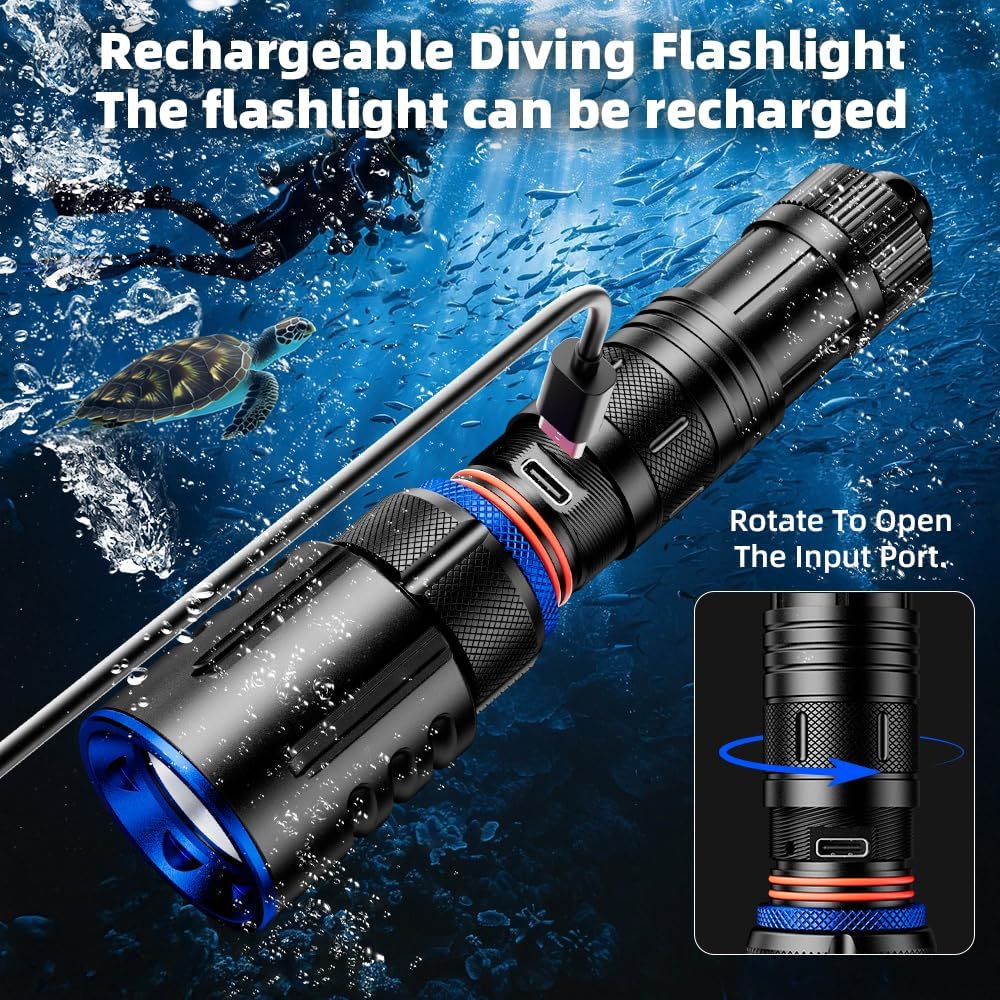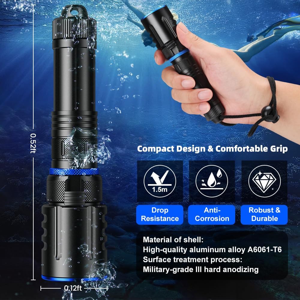 Scuba Diving Flashlight Dive Torch,High Lumens Rechargeable LED Flashlight, Underwater Scuba & Snorkeling Torch for Diving, Caving, and Emergency Use