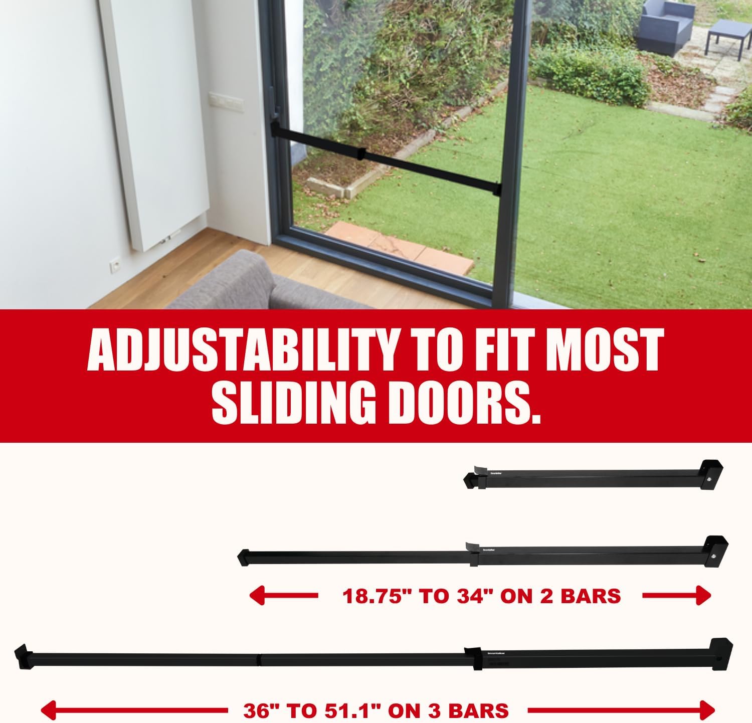 SECURITYMAN Sliding Door Security Bar-Child Proof Sliding Door Lock Bar with Anti Lift Lock – Fits Most Doors & Windows – Adjustable Patio Door Security Bar (18.75″- 51.1″) Black