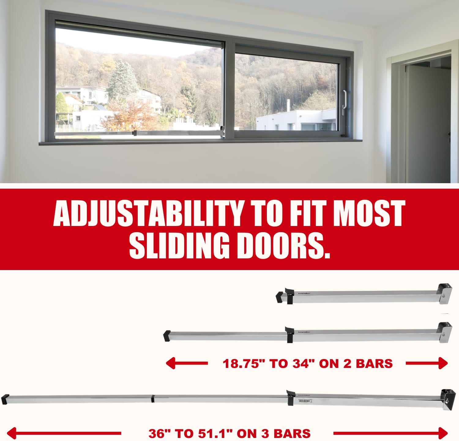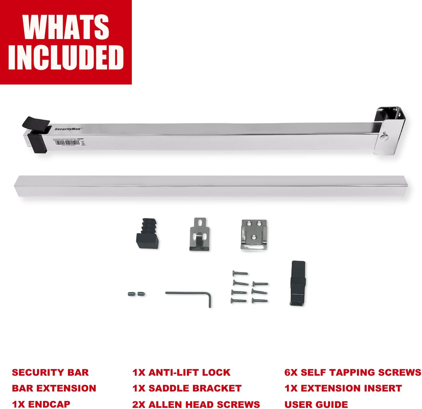 SECURITYMAN Sliding Door Security Bar-Child Proof Sliding Door Lock Bar with Anti Lift Lock – Fits Most Doors & Windows – Adjustable Patio Door Security Bar (18.75″- 51.1″) Chrome