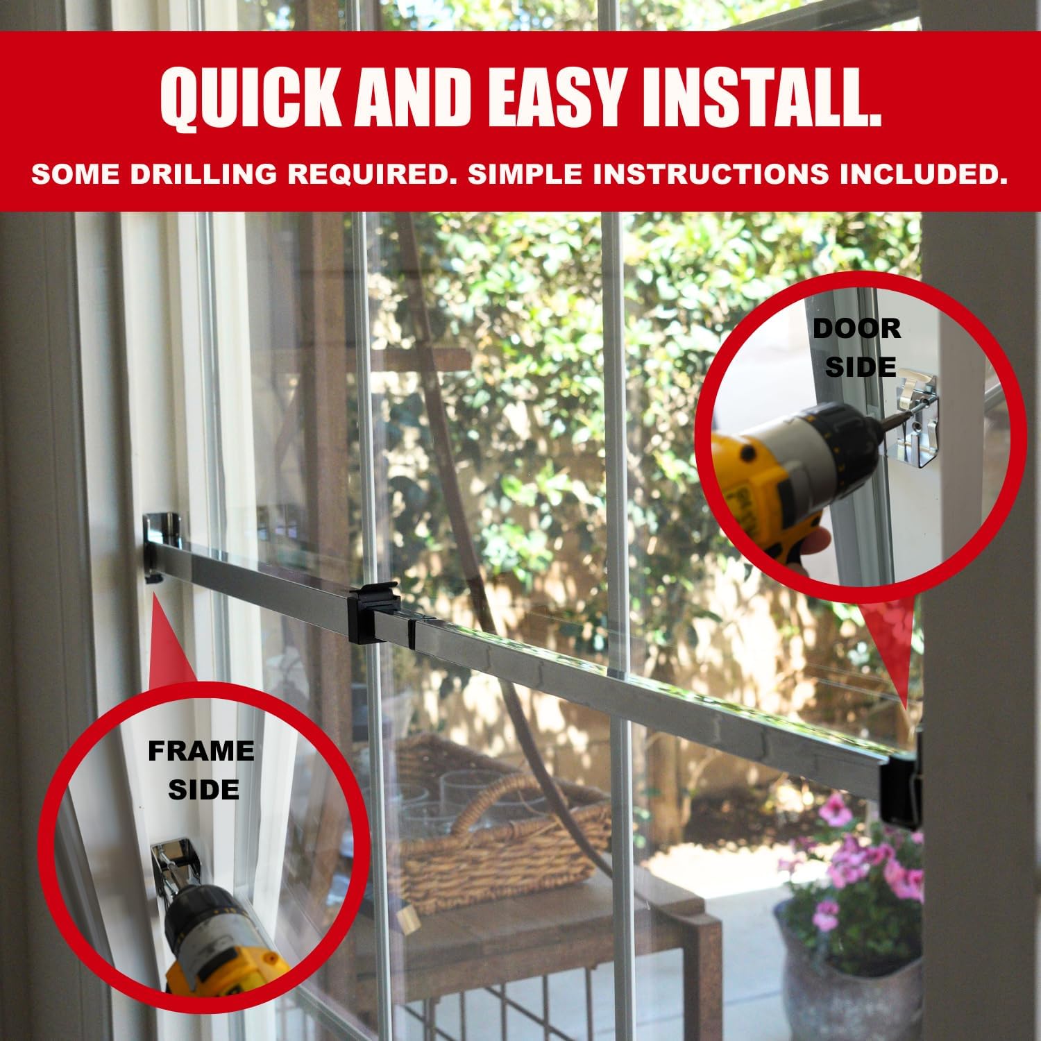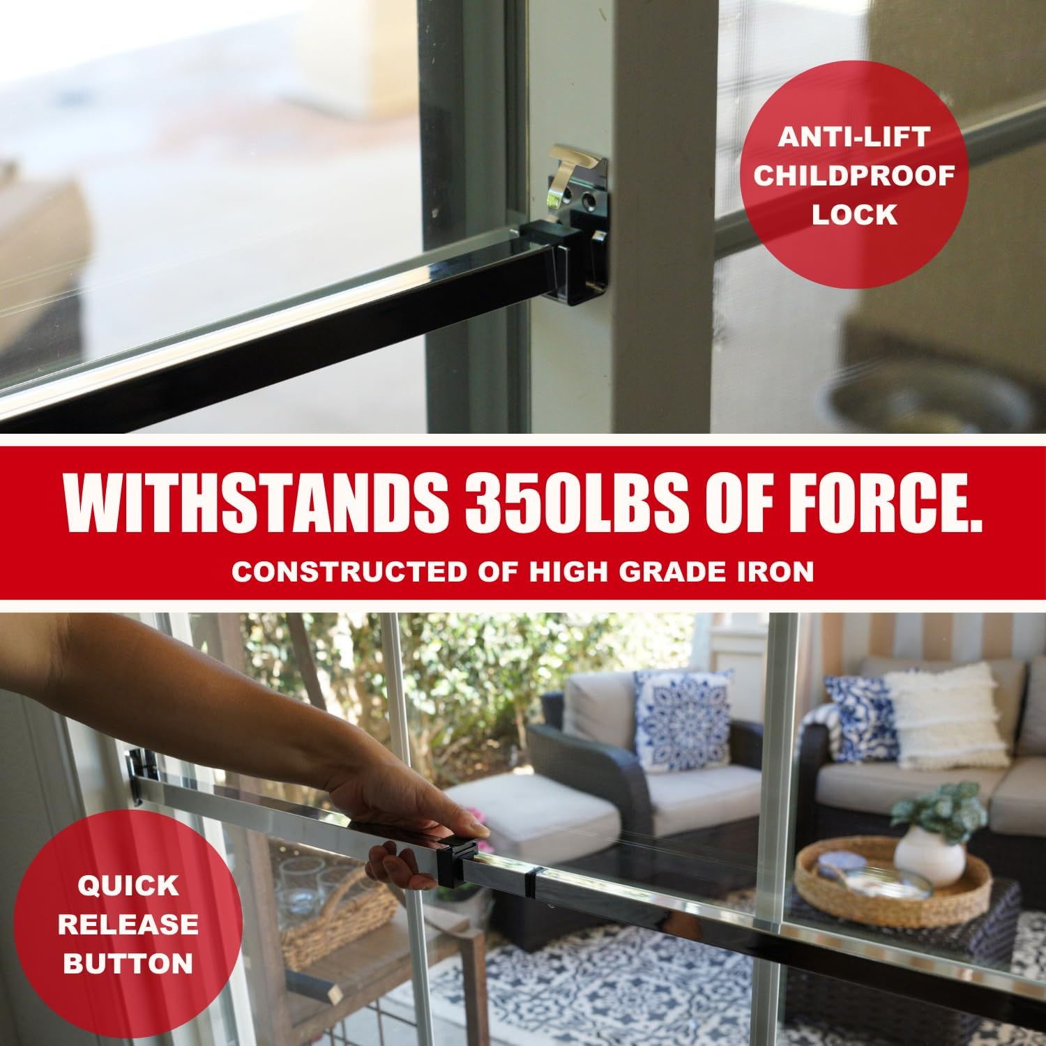 The SECURITYMAN Sliding Door Security Bar is designed to enhance the safety of your home. This adjustable security bar fits most doors and windows, ranging from 18.75" to 51.1" in length. Its child-proof design ensures that it can be used safely in homes with children. The bar features an anti-lift lock mechanism, which helps prevent unauthorized access by securing sliding doors effectively.