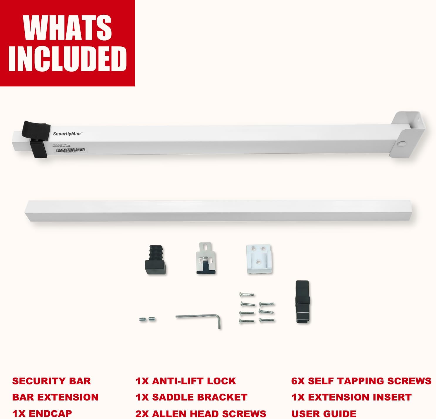 The SECURITYMAN Sliding Door Security Bar is made from durable materials designed to withstand force and provide reliable security.