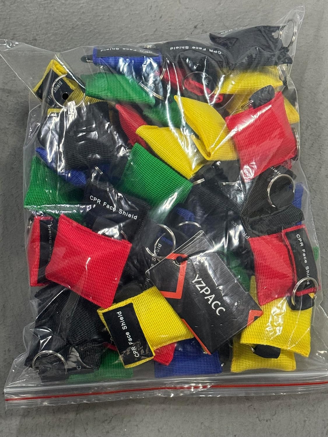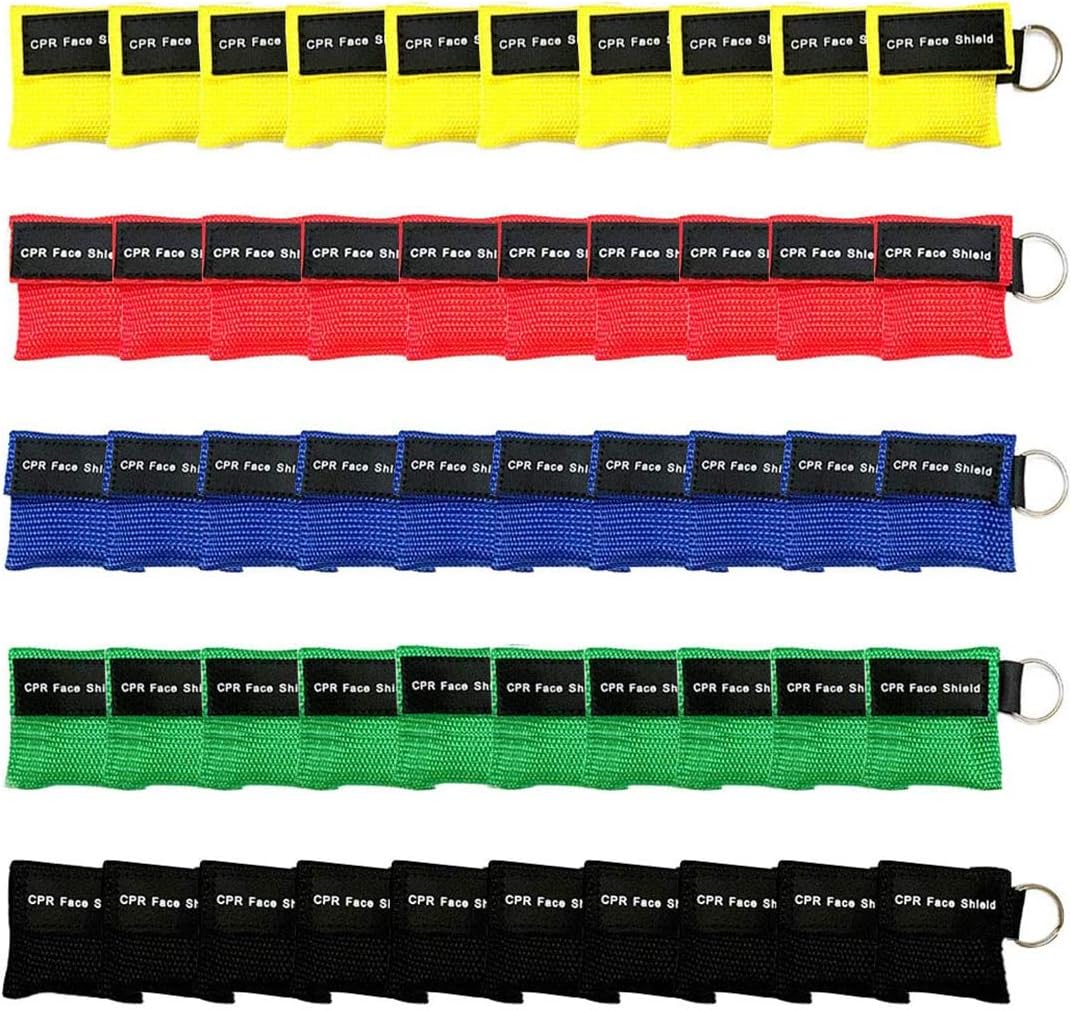 Set of 50 CPR Mask, Disposable CPR Shield Mask Emergency Mask Key Chain Ring ,with One-Way Valve Breathing Barrier for First Aid or AED Training (Colorful-50PCS)