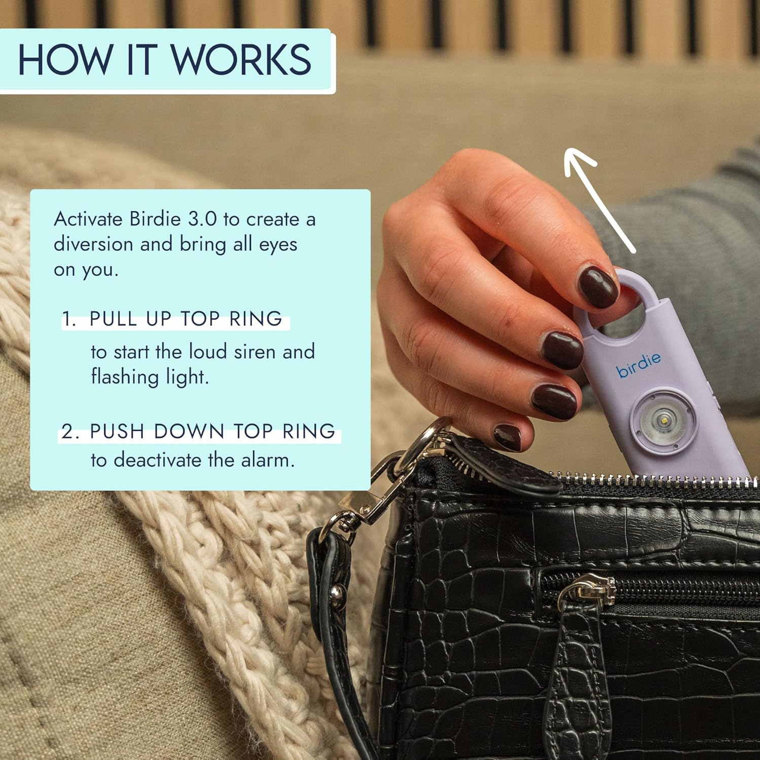 The She’s Birdie 3.0 is designed specifically for women, offering a reliable personal safety solution. This compact device features a loud 130dB siren that can be activated easily by pulling the top ring. In addition to the siren, it includes a high-intensity flashing strobe light to attract attention in emergencies. The rechargeable battery ensures that it is always ready for use. Available in a variety of colors, including Lemon Yellow, it combines functionality with style.
