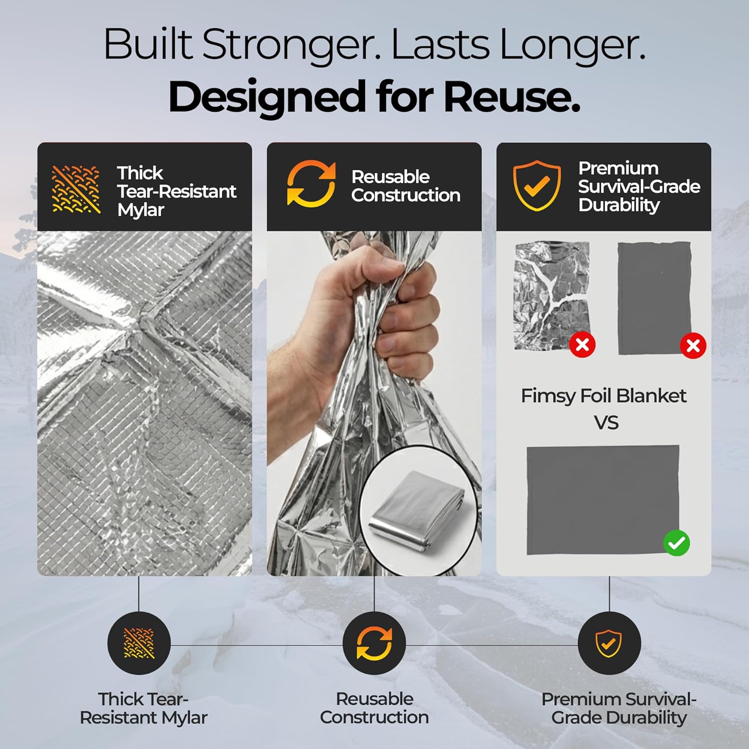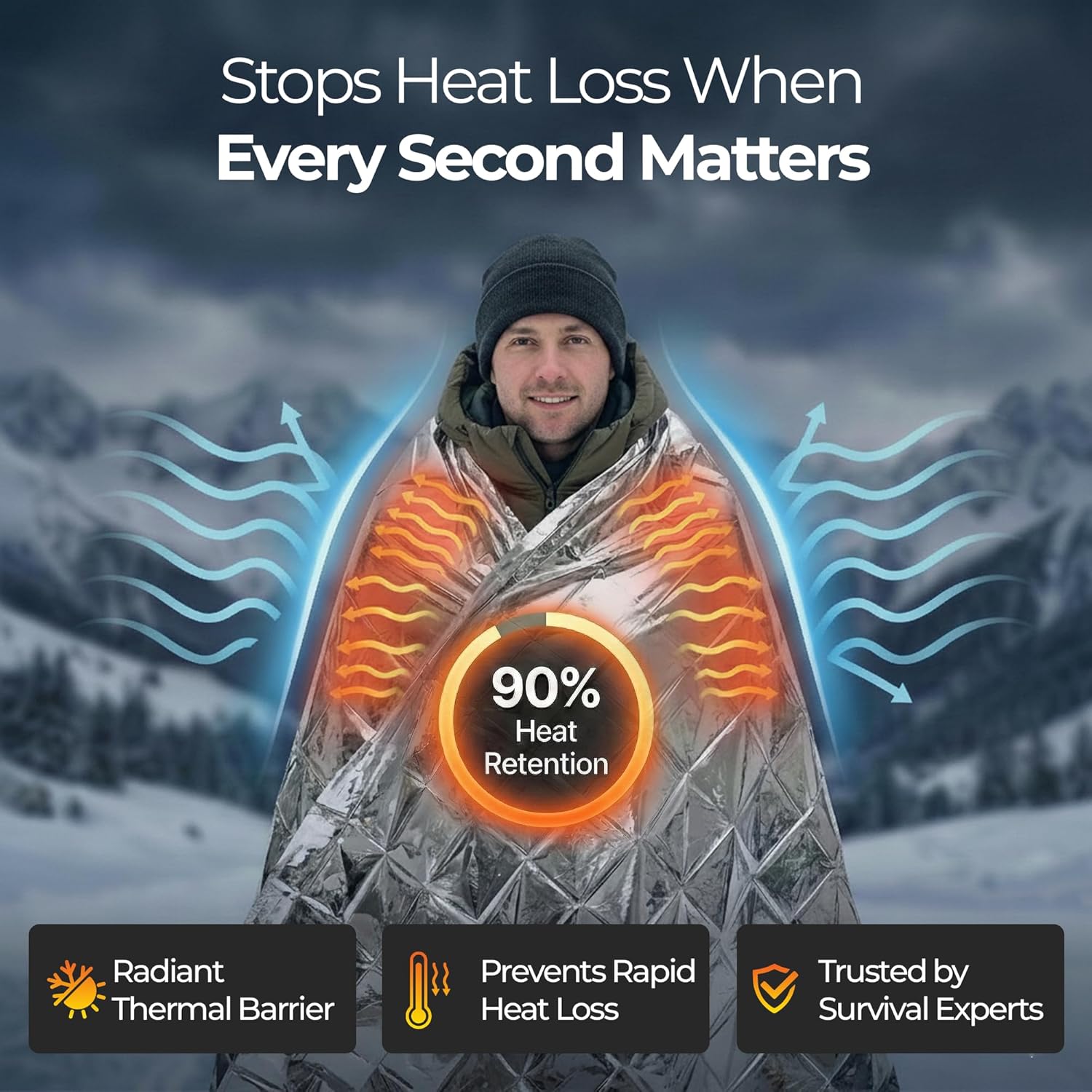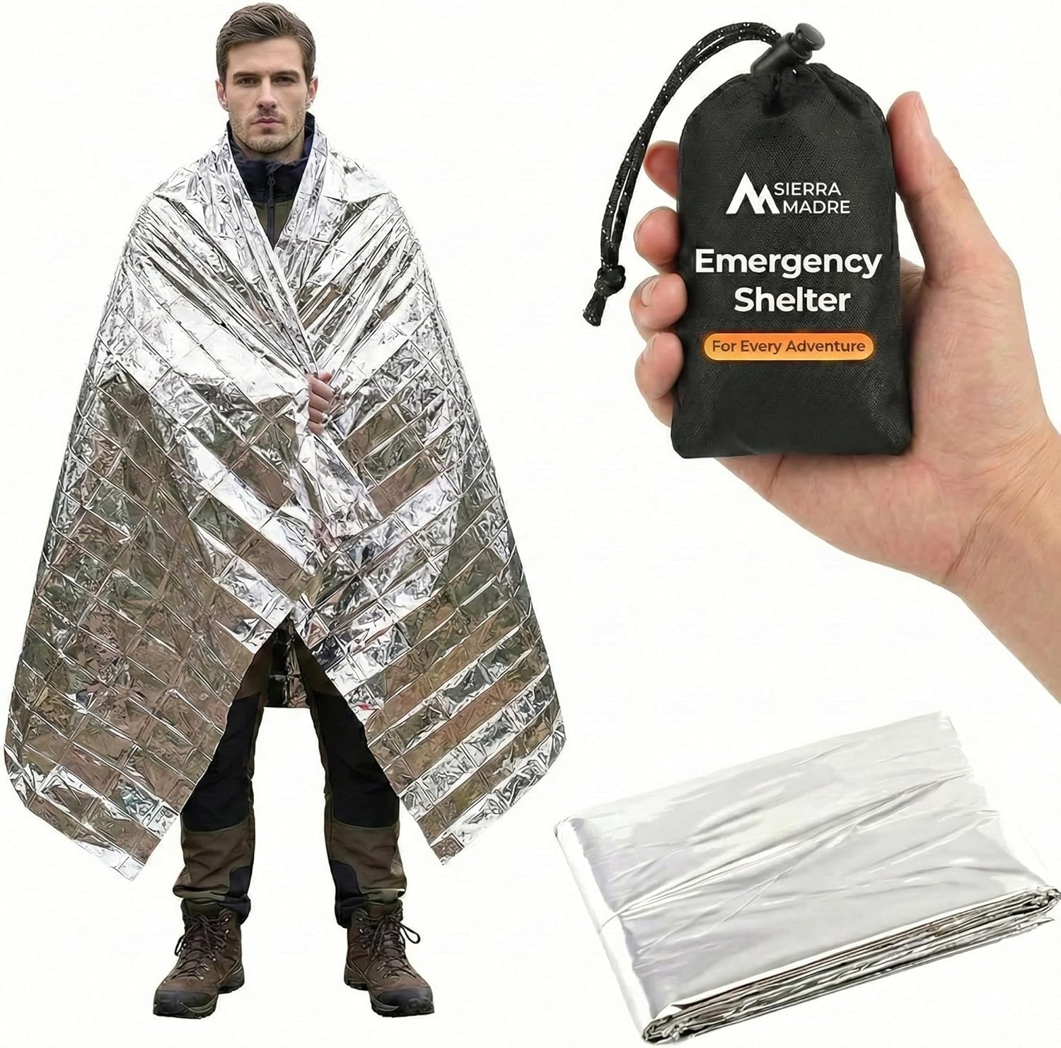 Sierra Madre Emergency Mylar Thermal Space Blanket for Survival – Waterproof Safety Shelter Retains 90% Body Heat – Ultralight & Compact Gear for Camping, First Aid & Prepper Supplies