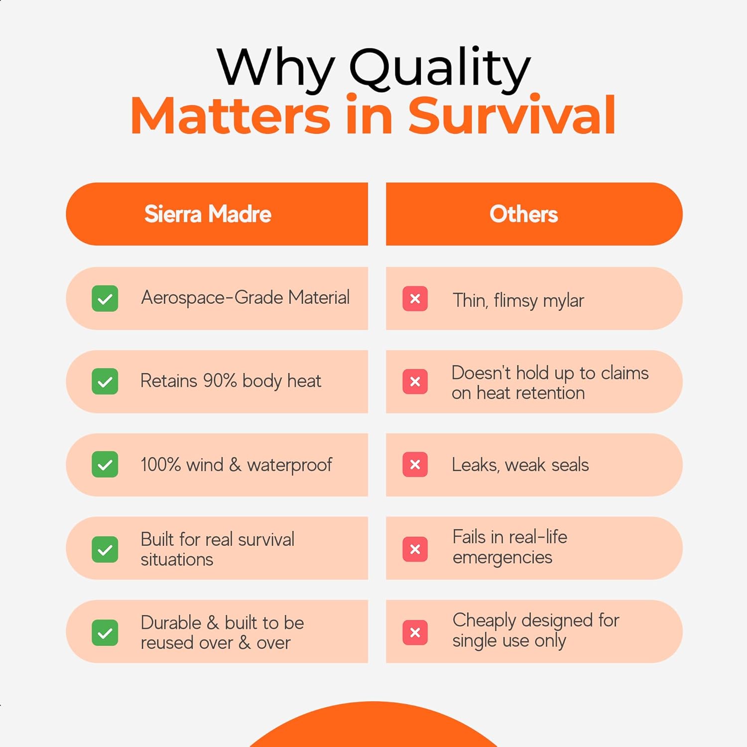Sierra Madre Emergency Sleeping Bag – Ultralight, Waterproof Mylar Thermal Bivy Sack Tent for Hiking, Bug-Out Bags, Survival Kits