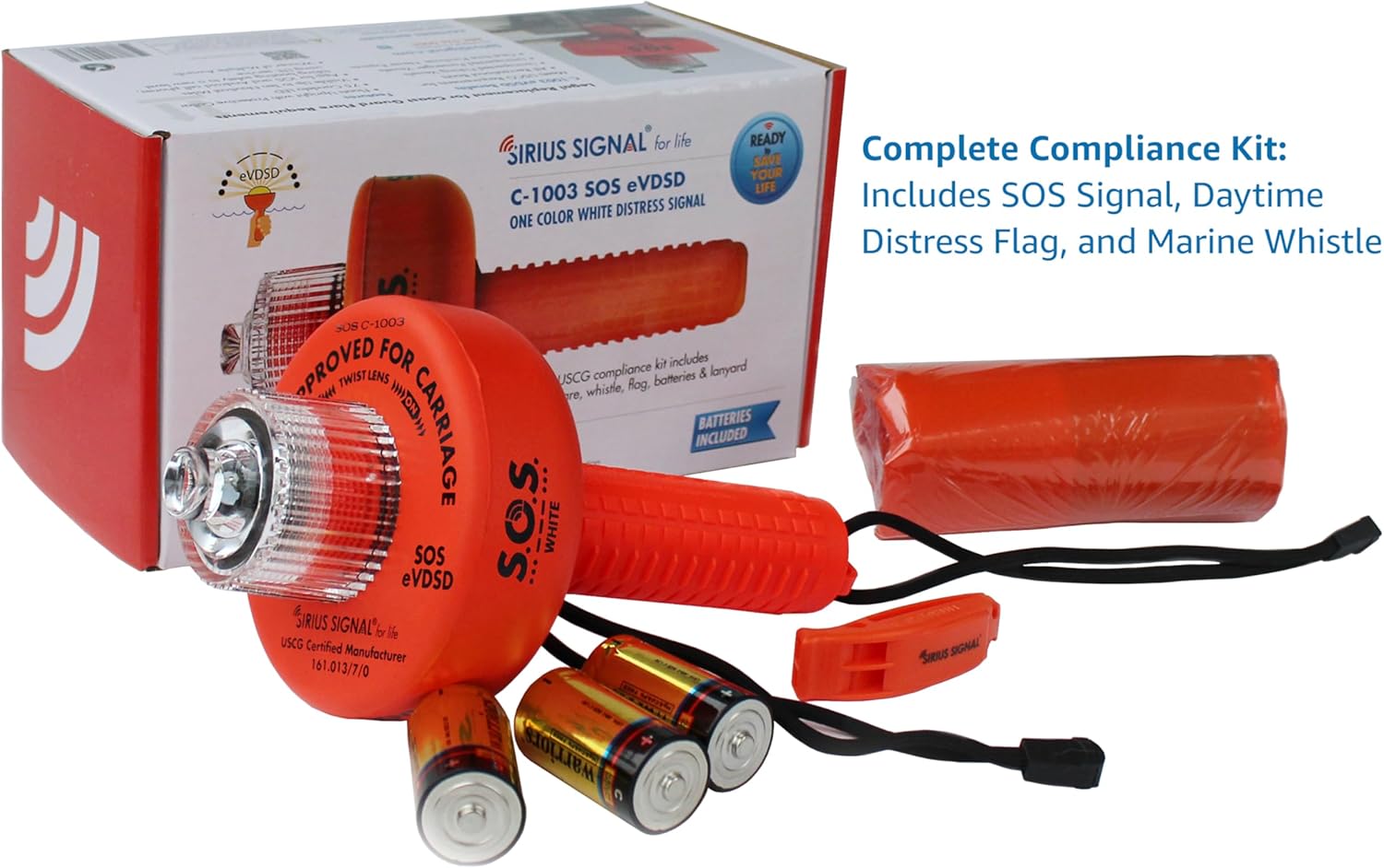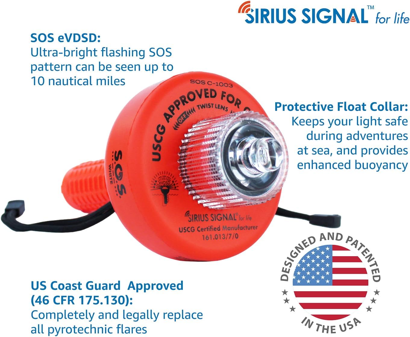 Sirius Signal C-1003 SOS LED Distress Signal – Electronic Flare Replacement, USCG Approved, Includes Daytime Flag & Whistle