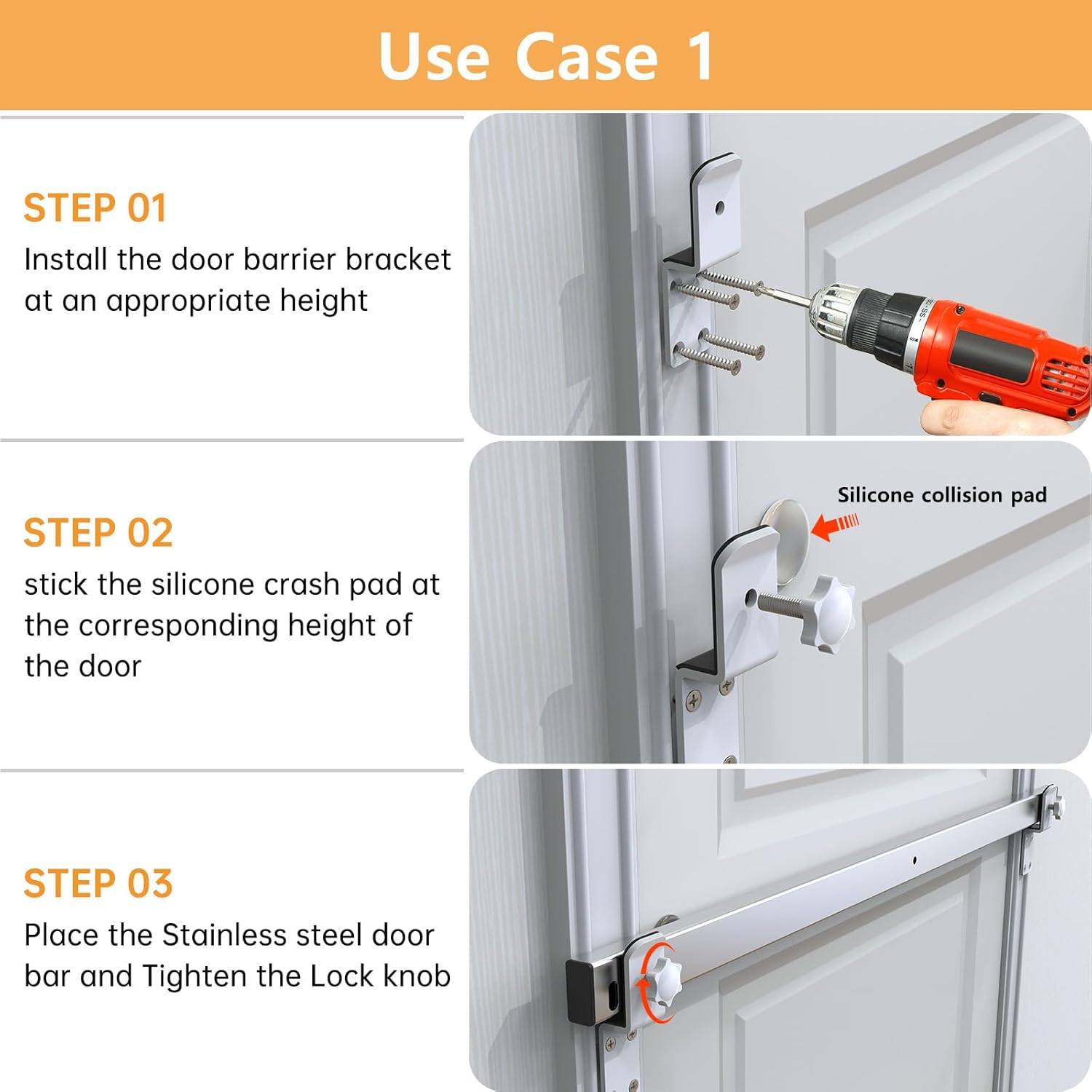 Quickly set up without professional help, fitting doors 33"-36" wide.