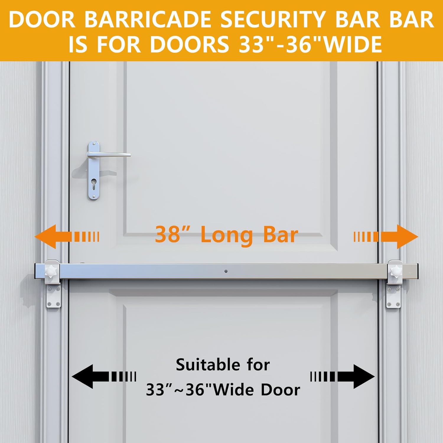 Stainless Steel Door Security Bar 38″ (Door Barricade) Anti Door Break in, Security Door Safety Lock Bar from Inside, Fits Doors 33″-36″ Wide.