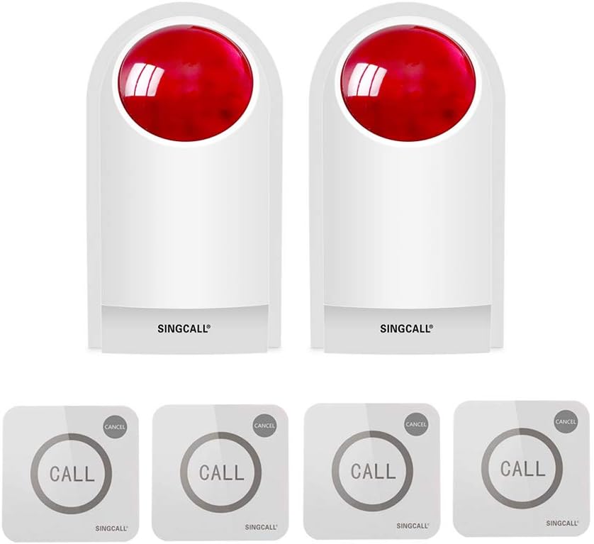 The SINGCALL Security Alarm System is designed to enhance safety for both homes and businesses. This wireless strobe siren alarm system features a loud alarm that can reach up to 120dB, effectively deterring intruders and alerting nearby individuals. The system includes two red flashing sirens and four emergency buttons, making it suitable for various settings such as stores, hotels, and jewelry shops.