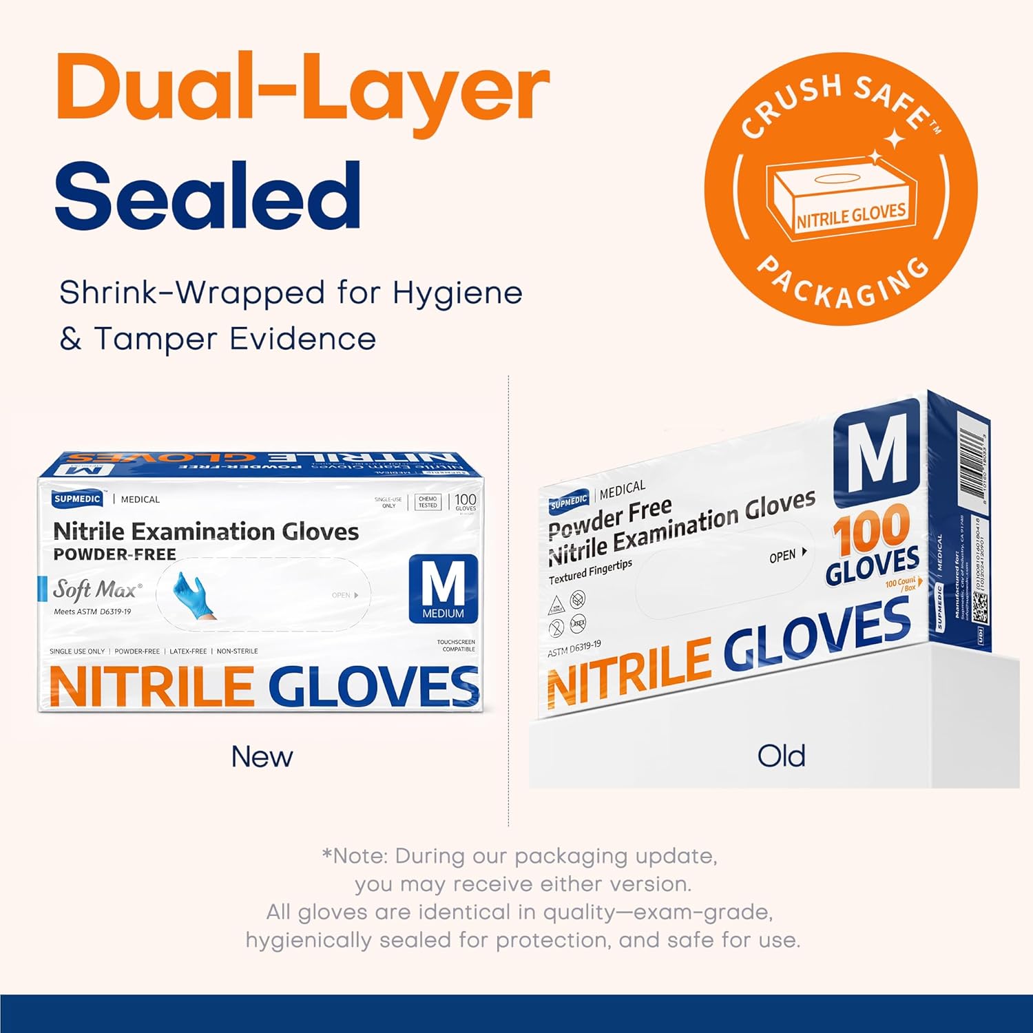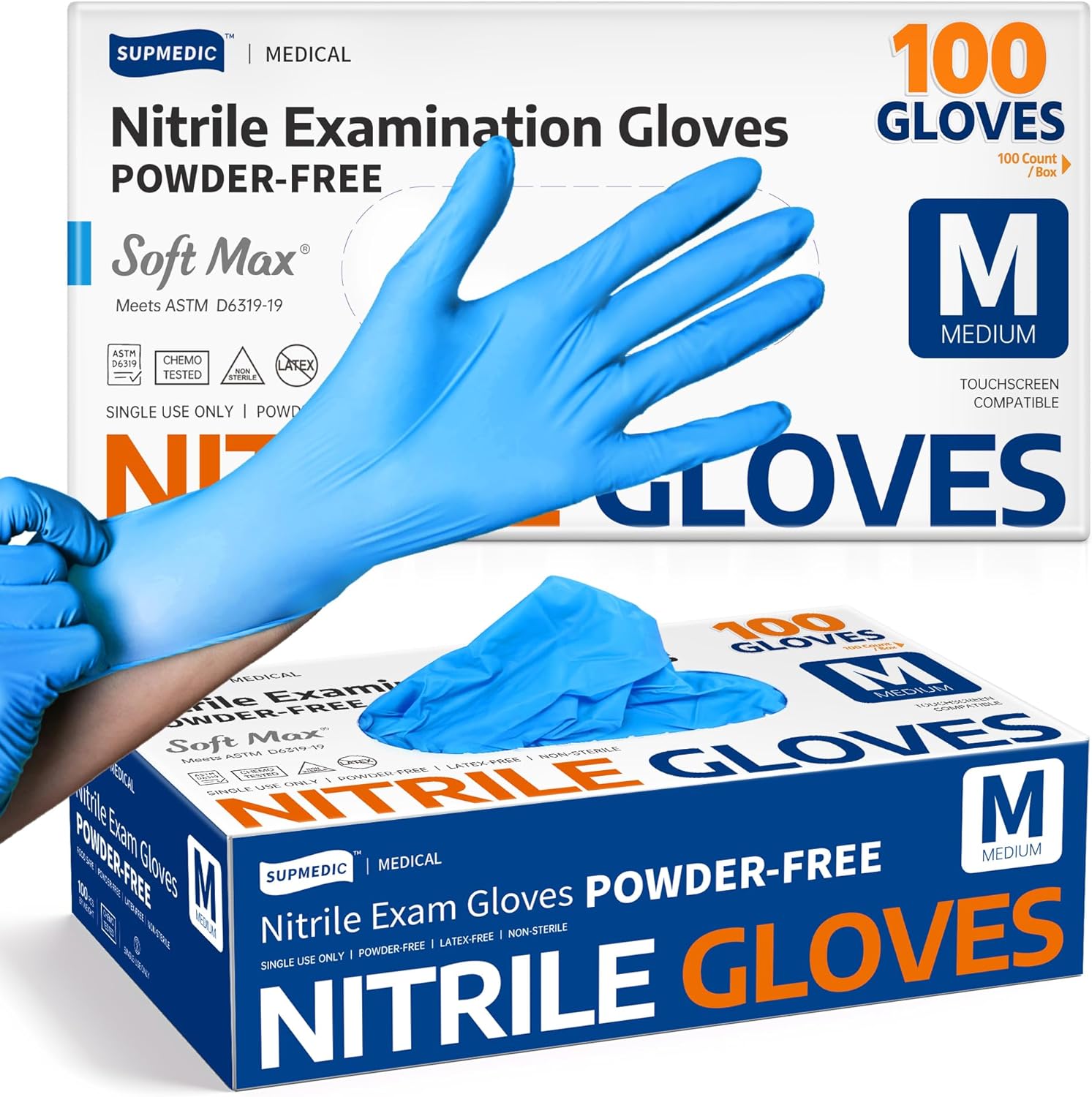 Supmedic Medical Soft Max™ Nitrile Exam Gloves, 100 Count Latex-Free Powder-Free Non-Sterile Food Safe Disposable Glove, Blue