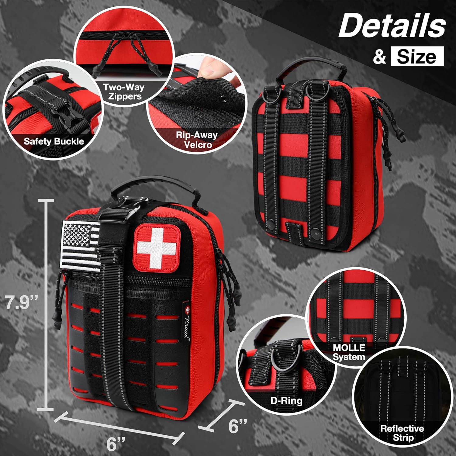 - Features a chest seal to treat open chest wounds.