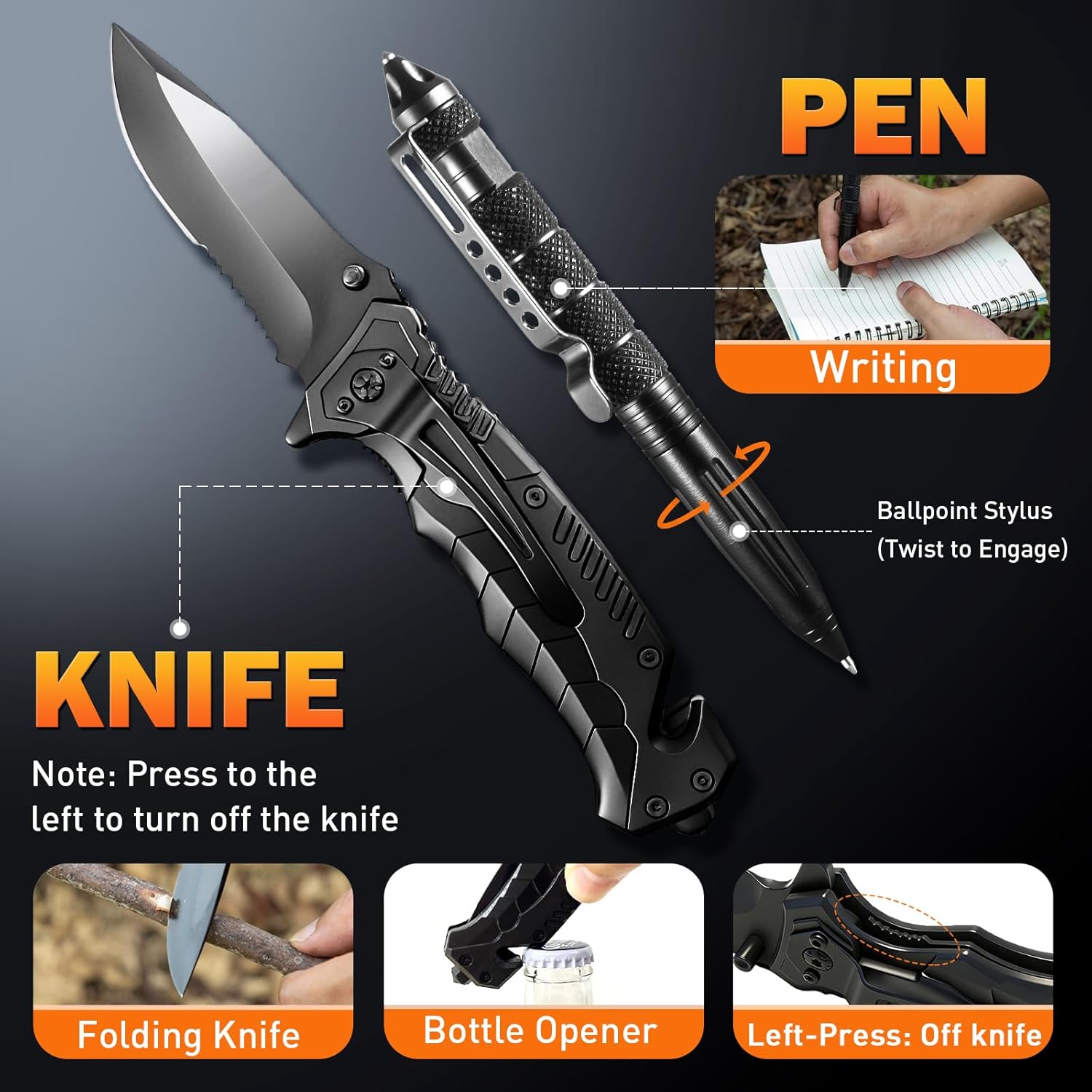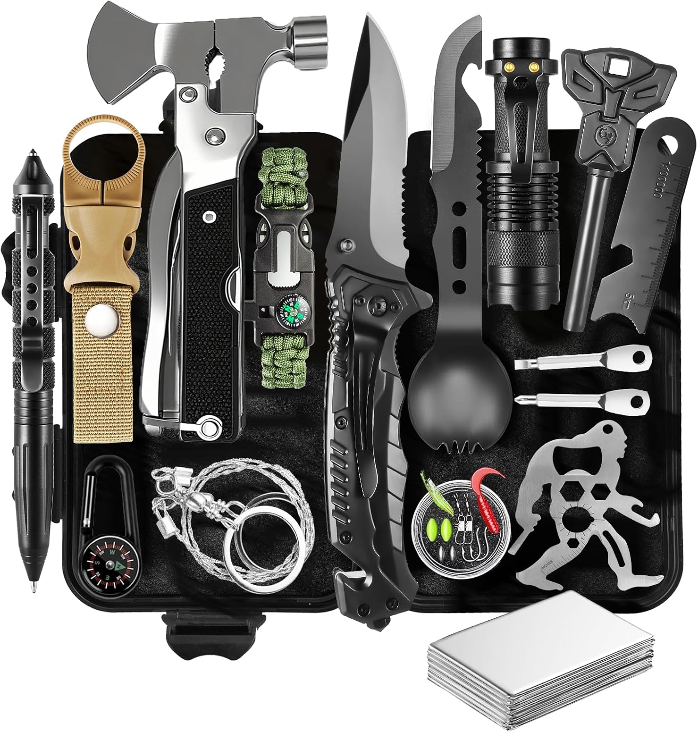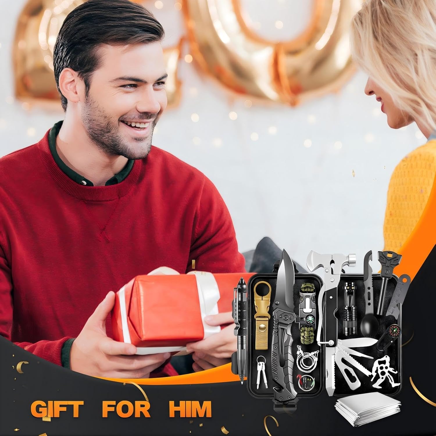 Survival Gear Kit for Men: 27-in-1 Complete Tools & Camping Accessories for Hiking, Fishing, Emergency | The for Husband, Dad, Boyfriend