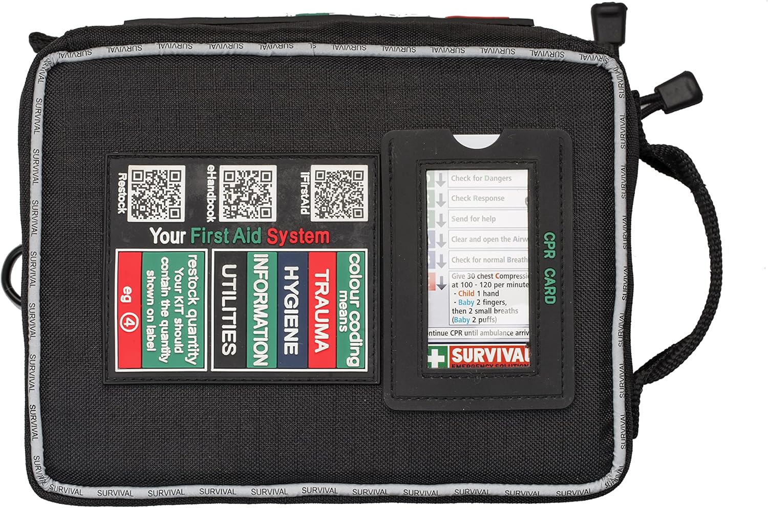 The SURVIVAL Vehicle First Aid KIT is meticulously designed for motorists and outdoor enthusiasts alike. It includes 94 essential pieces, ensuring you have the necessary supplies for emergencies. The compact design allows for easy storage in your vehicle without taking up too much space. A color-coded labeling system helps users quickly identify items and their uses, facilitating a swift response in urgent situations. The kit features a sophisticated MOLLE system for customized attachment, new shoulder straps for easy carrying, and robust zips for durability.