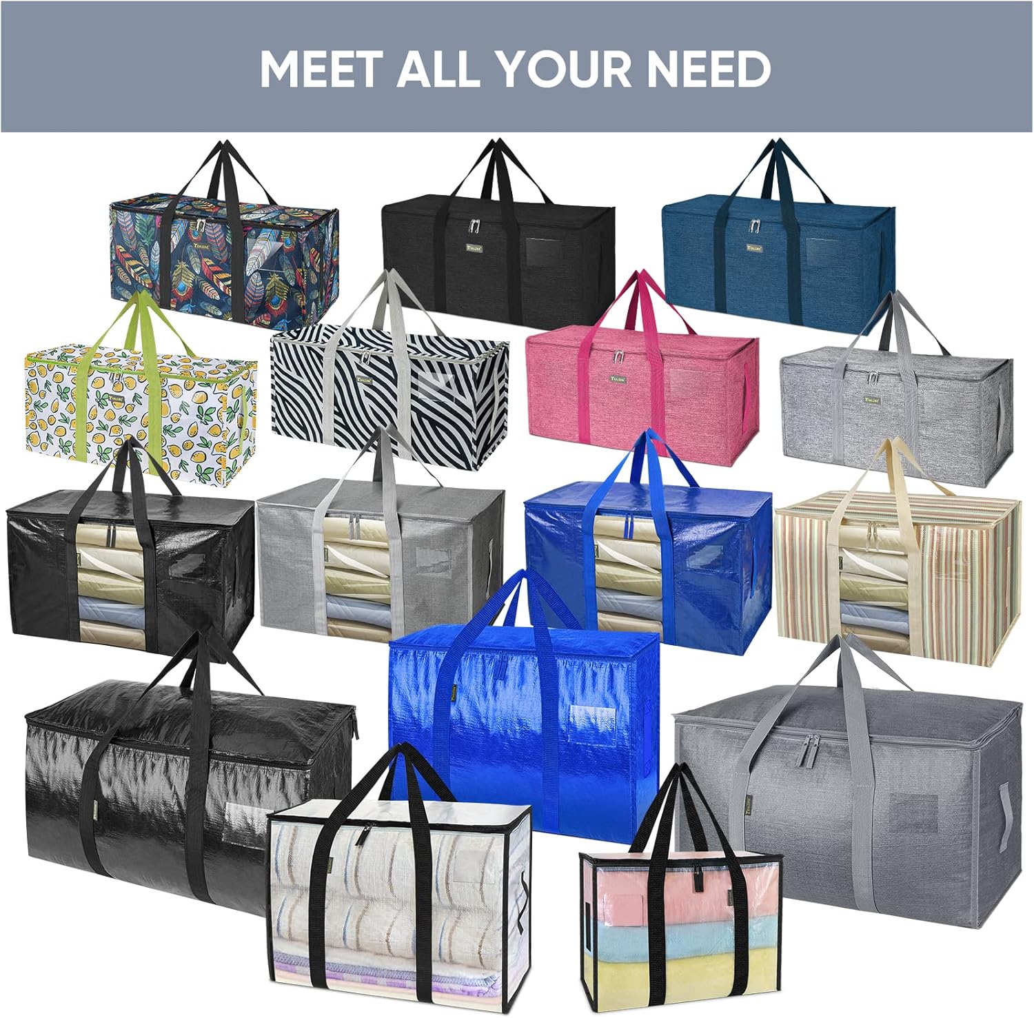 TICONN 4 Pack Extra Large Moving Bags Heavy Duty with Zippers & Carrying Handles, Durable Storage Bags Moving Boxes for Closet Organizers and Storage (4 Pack, Blue)