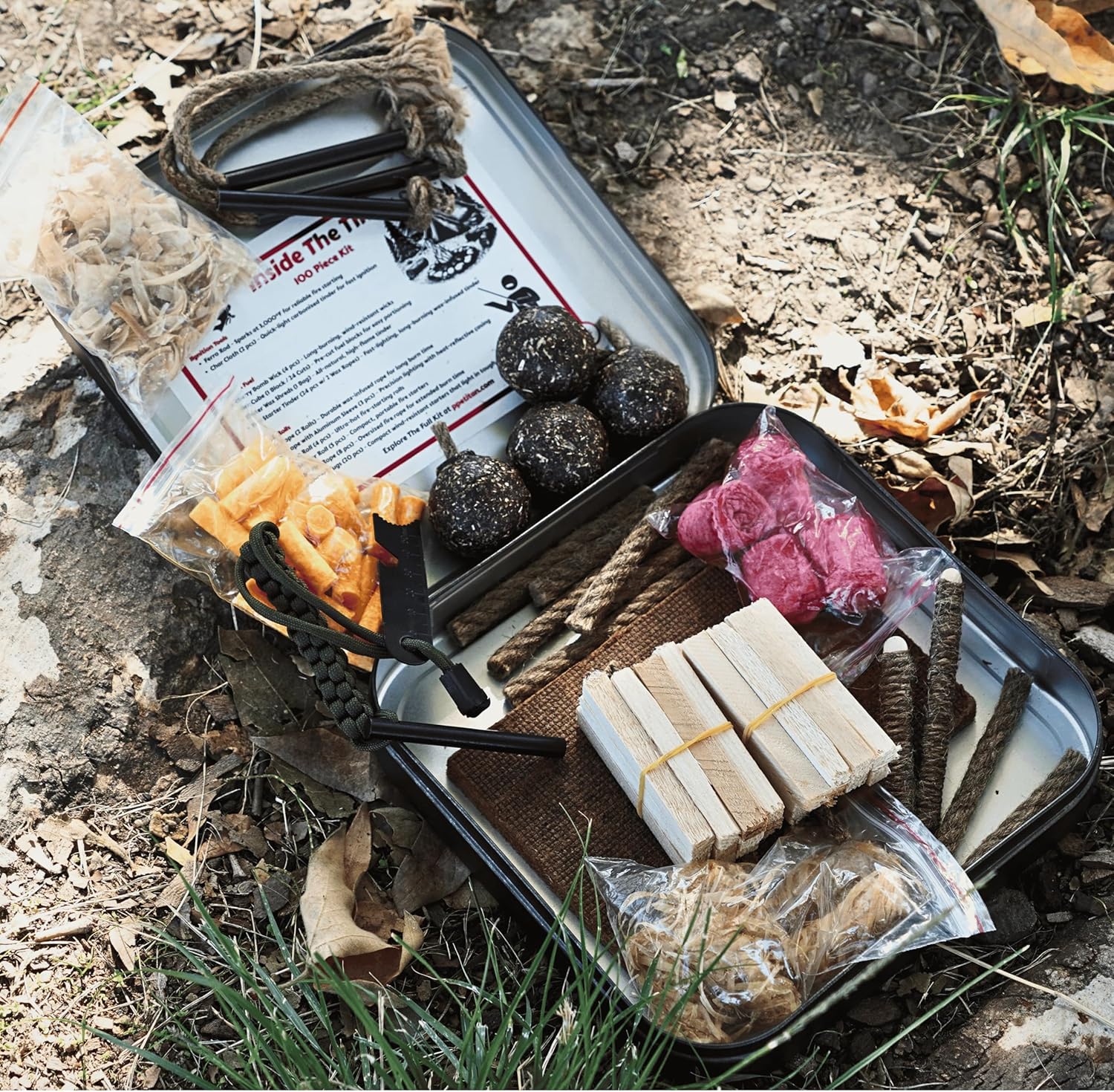 - Comprehensive 100-piece kit for various fire-starting needs