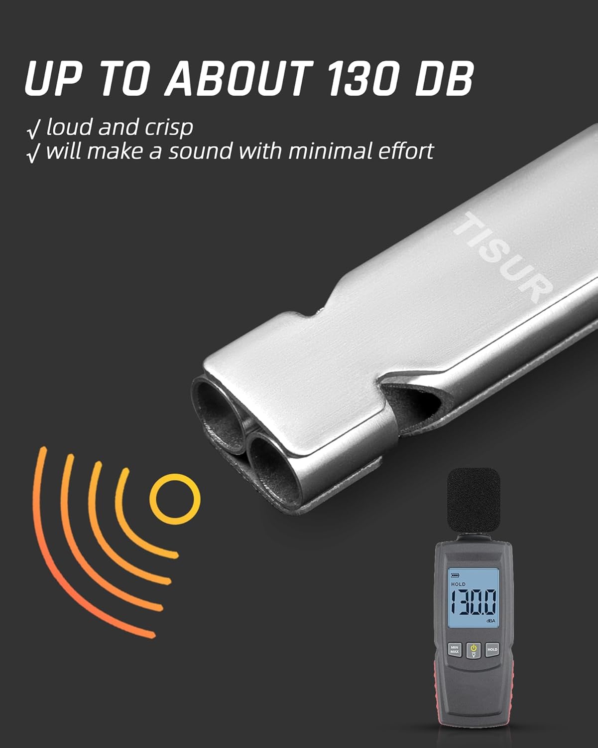 The TISUR Loud Emergency Whistle is designed for various outdoor activities, making it an essential tool for safety. With a powerful sound exceeding 130 decibels, it ensures that you can be heard in emergencies. This compact whistle is easy to attach to your keychain, allowing for hands-free use. Whether you're camping, hiking, or need a signal for your dog, this whistle meets diverse needs.