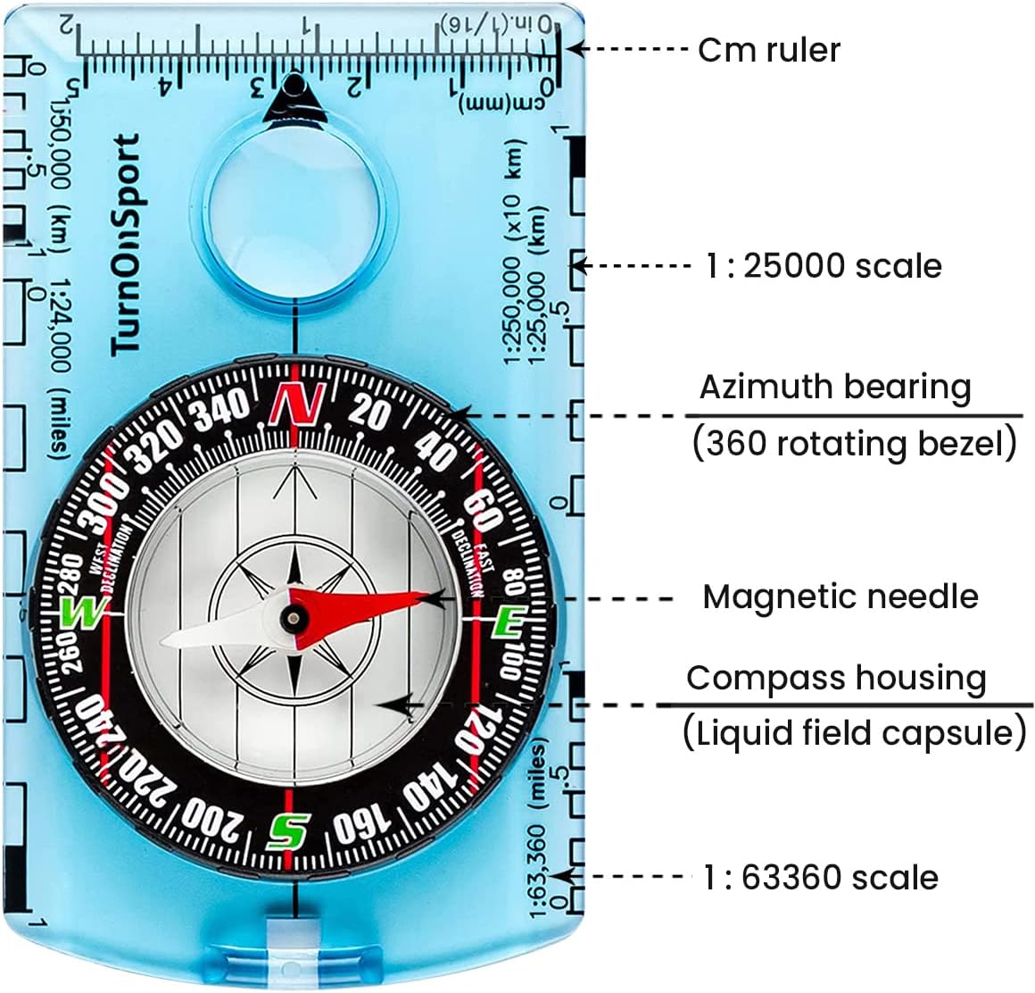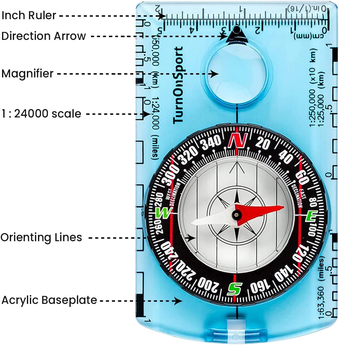 TurnOnSport Orienteering Compass – Advanced Scout Compass for Hiking, Camping, and Backpacking – Best Survival Gifts for Kids