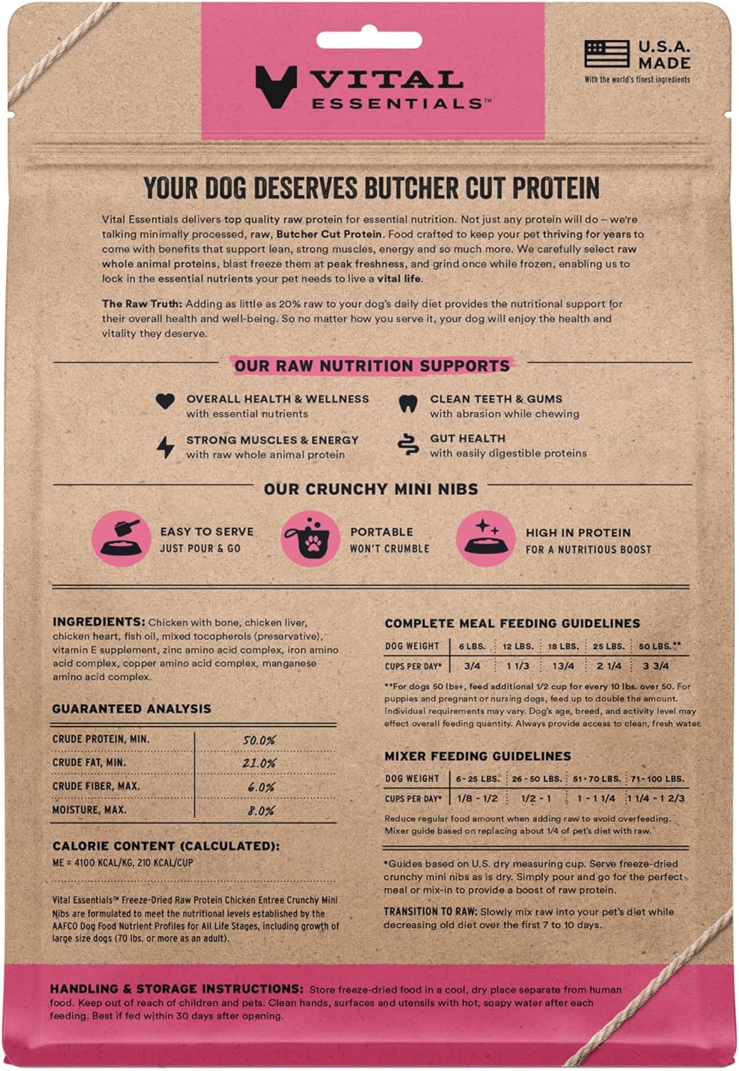 Vital Essentials Freeze Dried Dog Food, Raw Chicken Crunchy Mini Nibs | Complete Meal or Topper | 96% Chicken, Organs & Bone | Limited Ingredient, High Protein, Grain Free Dry Dog Food | 14 oz Bag