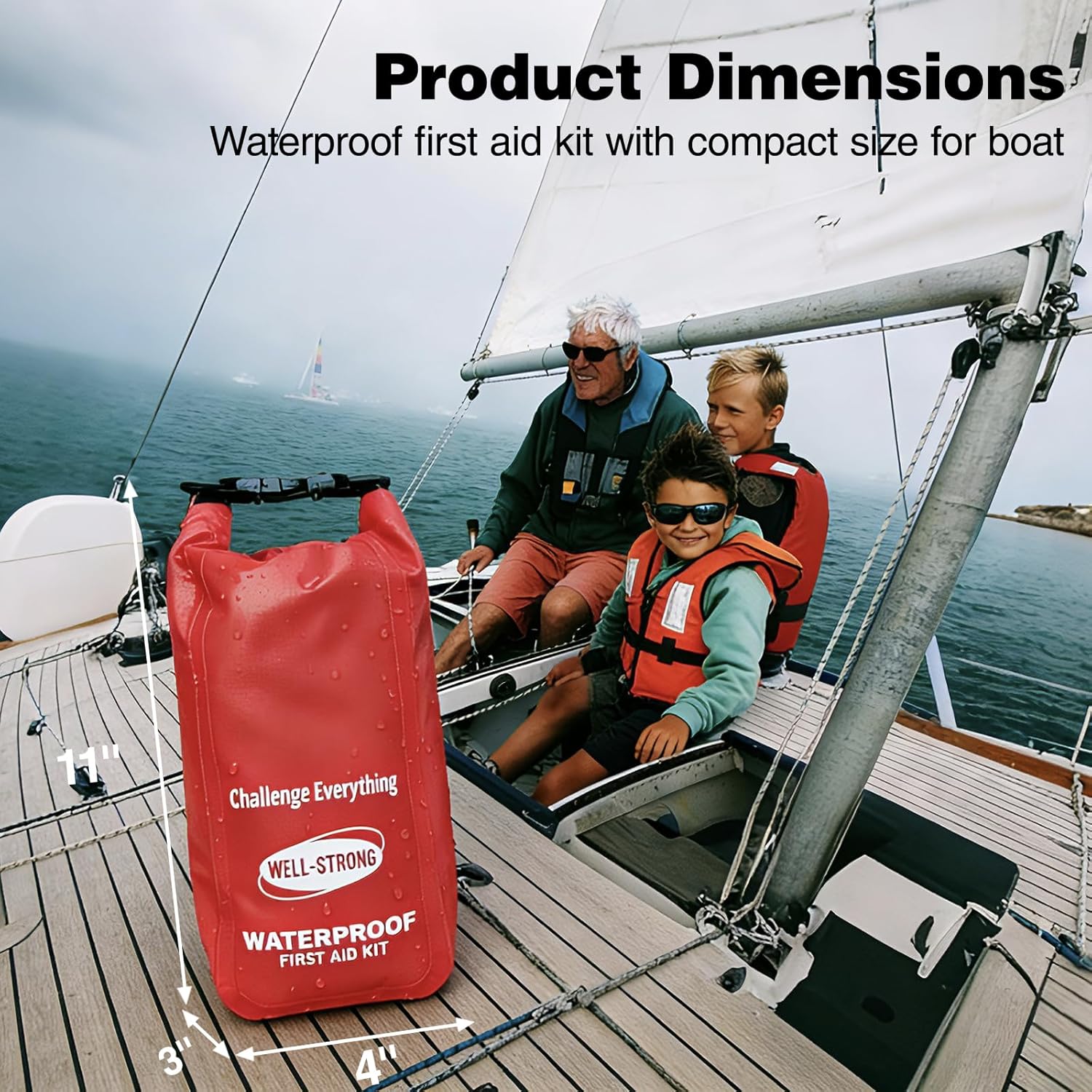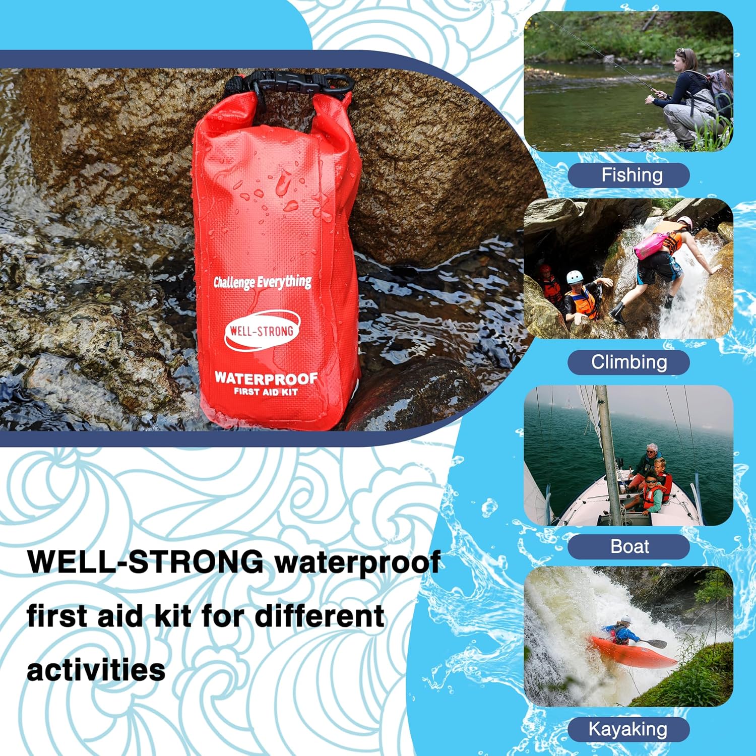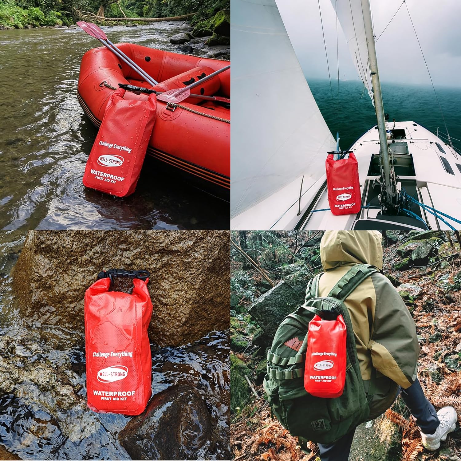 Waterproof First Aid Kit Roll Top Boat Emergency Kit with Waterproof Contents for Fishing Kayaking Boating Swimming Camping Rafting Beach Red