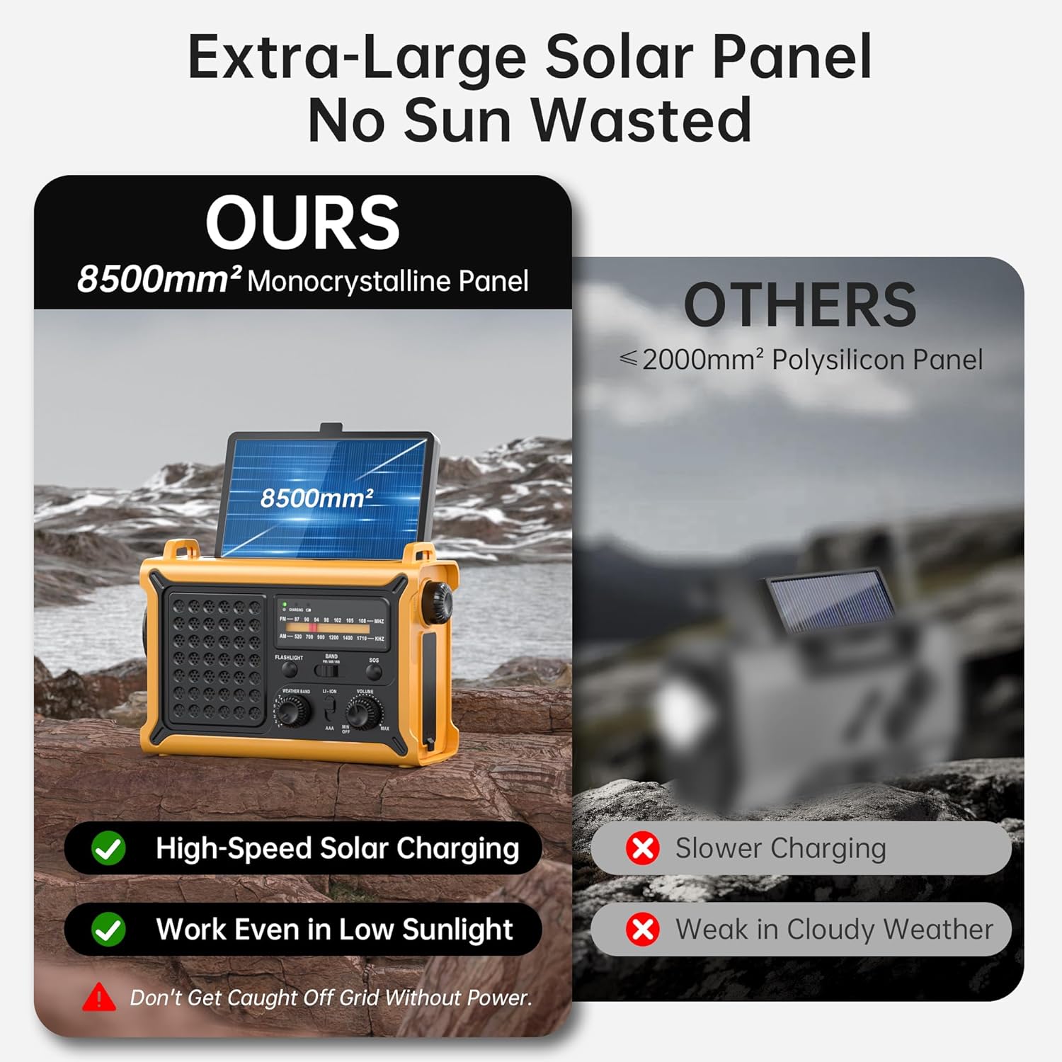 Weather Radios Portable AM FM NOAA Alert with Battery Backup 12000mAh 44400mWh, Fast Solar Power, Emergency Radio Hand Crank Flashlight, Reading Lamp SOS for Home Outdoor Camping