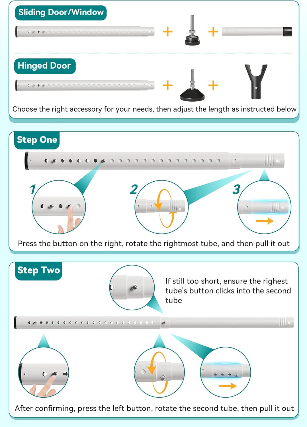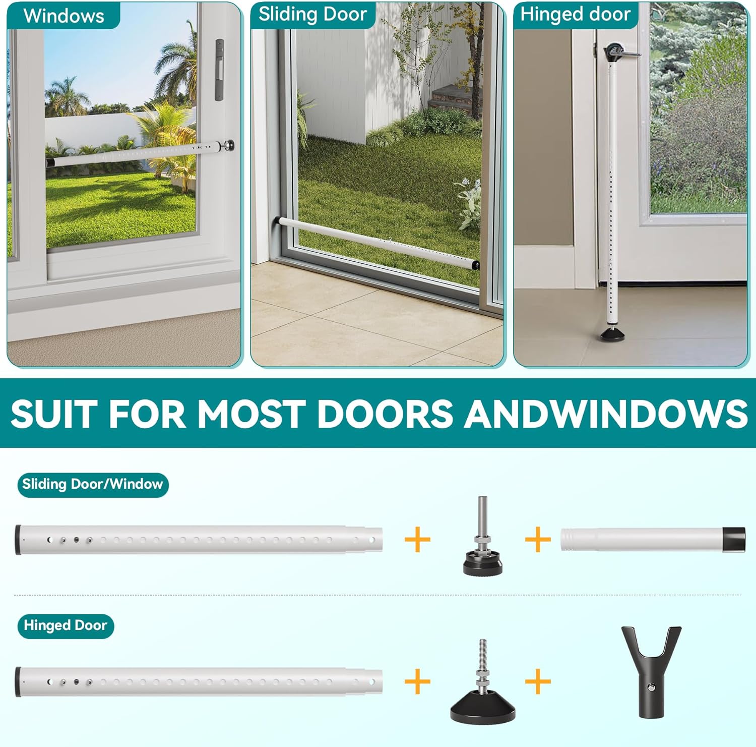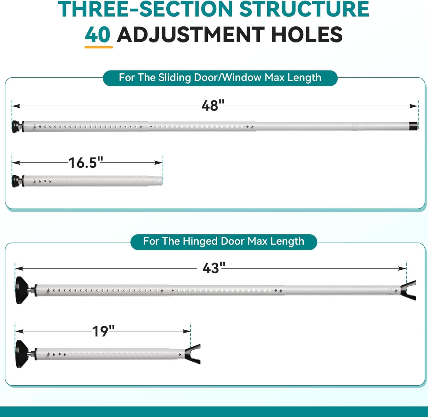 The WooFog 2-in-1 Sliding Door Security Bar and Window Security Bar is designed to enhance the safety of your home. With an adjustable length of 16.5 to 48 inches, it can fit various door and window sizes, making it versatile for different applications. This security bar is made from durable materials, ensuring it withstands daily use while providing peace of mind.