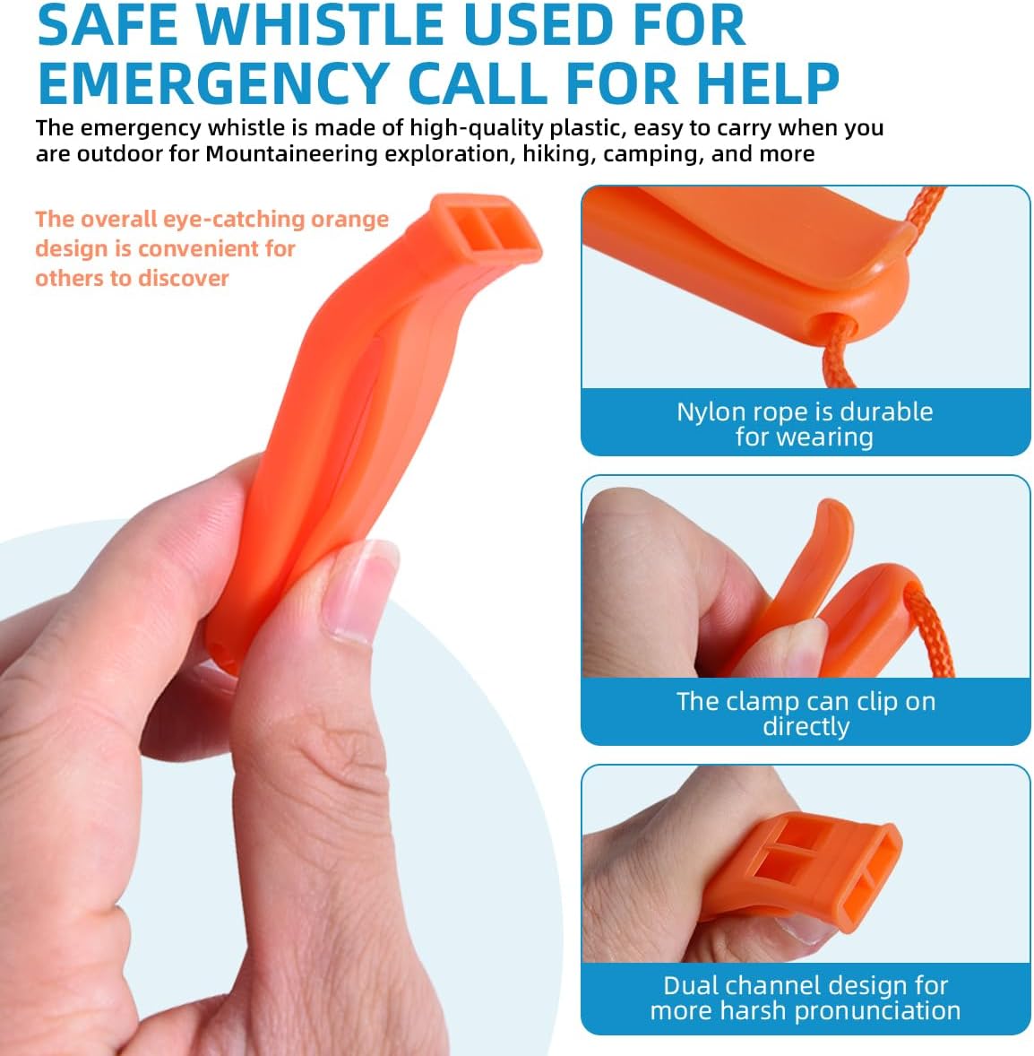The WSSROGY 12 Pack Emergency Whistles are designed for effective signaling in emergencies. Each whistle features a double tube design, producing a loud sound of up to 120 decibels, ensuring you can be heard from a distance. These whistles are lightweight and come with lanyards for easy carrying and accessibility. Ideal for outdoor activities, they can be used for camping, hiking, or boating. The pack includes 12 whistles, making it a great option for groups or for keeping in multiple locations.
